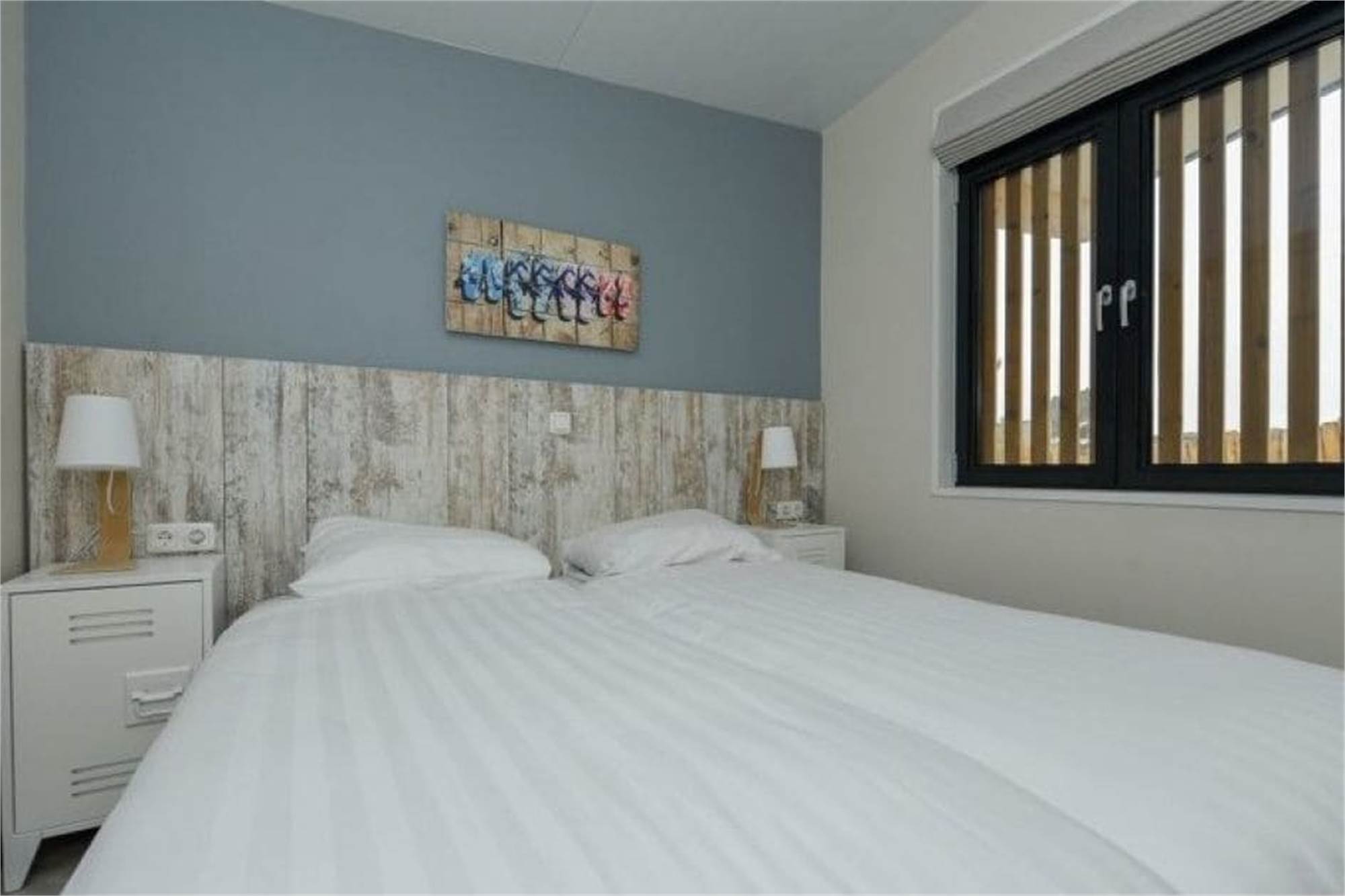 Diese freistehende Lodge ist für 4 Personen geeignet. Im Wohnzimmer befindet sich eine Sitzecke, eine Essecke und ein Smart-TV. Die Küche ist mit einem Geschirrspüler, Kühlschrank mit Gefrierfach, einer Mikrowelle, Kaffeemaschine und Wasserkocher ausgestattet. Es sind 2 Schlafzimmer mit jeweils 2 Einzelbetten vorhanden. Im Schlafzimmer ist Platz für ein extra Kinderbett. Das Badezimmer verfügt über ein Waschbecken und eine begehbare Dusche. Es ist ein separates WC vorhanden. Zur Lodge gehören ein Garten mit Veranda und Gartenmöbeln. Die gesamte Lodge ist mit Fußbodenheizung versehen und verfügt über kostenloses WiFi.