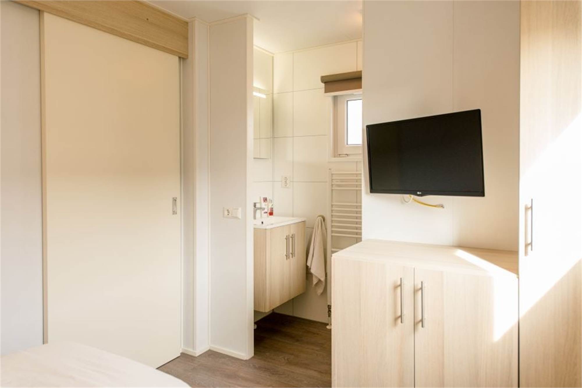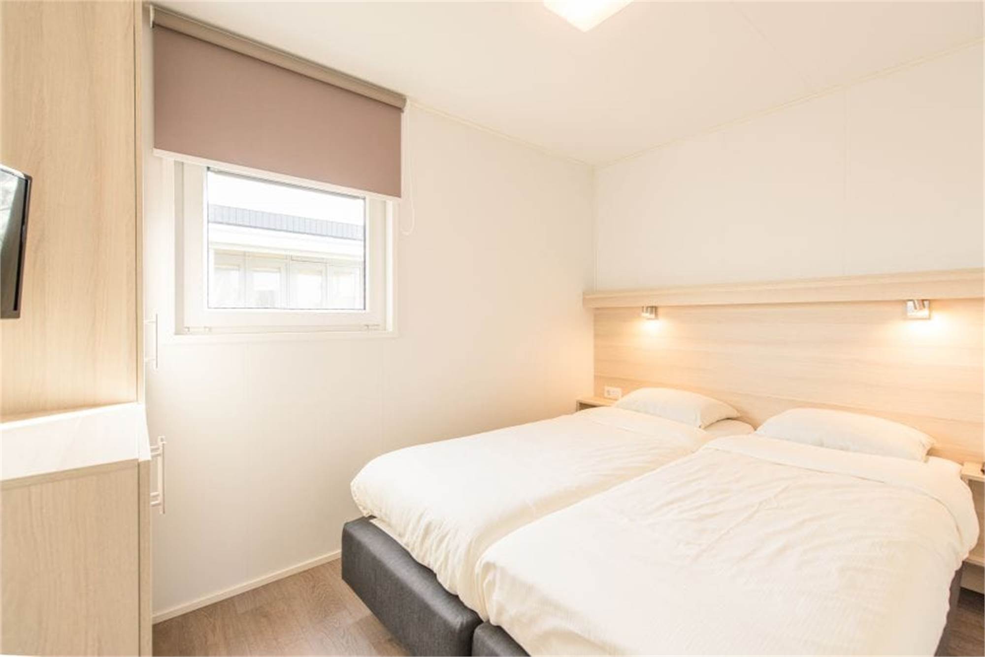 Freistehende, ebenerdige Lodge für 4 Personen. Das Wohnzimmer ist geschmackvoll und modern eingerichtet. Die Küche ist mit Geschirrspüler, Mikrowelle, Kühlschrank mit Gefrierfach und Kaffeemaschine ausgestattet. Außerdem bietet die Lodge 2 Schlafzimmern, 2 Badezimmern mit Dusche und 1 separate Toilette. Alle Schlafzimmer sind mit Einzel-Boxspringbetten ausgestattet. Es gibt ein zusätzliches einen Garten mit Gartenmöbeln und gratis WiFi.