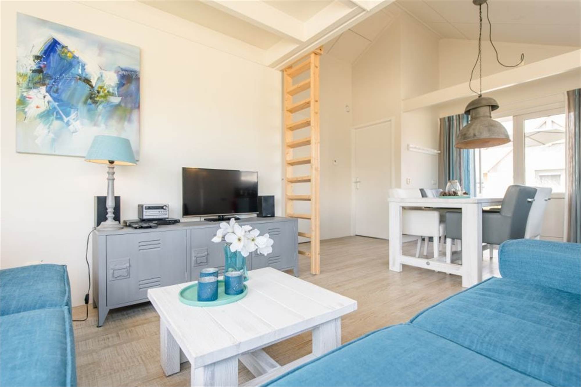 Dieses freistehende Chalet in Strandnähe eignet sich für 4 Personen. Das Wohnzimmer verfügt über einen separaten Essbereich und die Küche ist u. a. mit Mikrowelle, Geschirrspüler und Kaffeemaschine ausgestattet. Außerdem gibt es 2 Schlafzimmer mit je 2 Einzel-Boxspringbetten (eins davon mit TV-Gerät) sowie ein Badezimmer mit Dusche und Toilette. Das Chalet bietet ein Campingbettchen und einen Kinderstuhl. Im Außenbereich finden Sie eine möblierte Terrasse und die Nutzung von WiFi ist gratis.