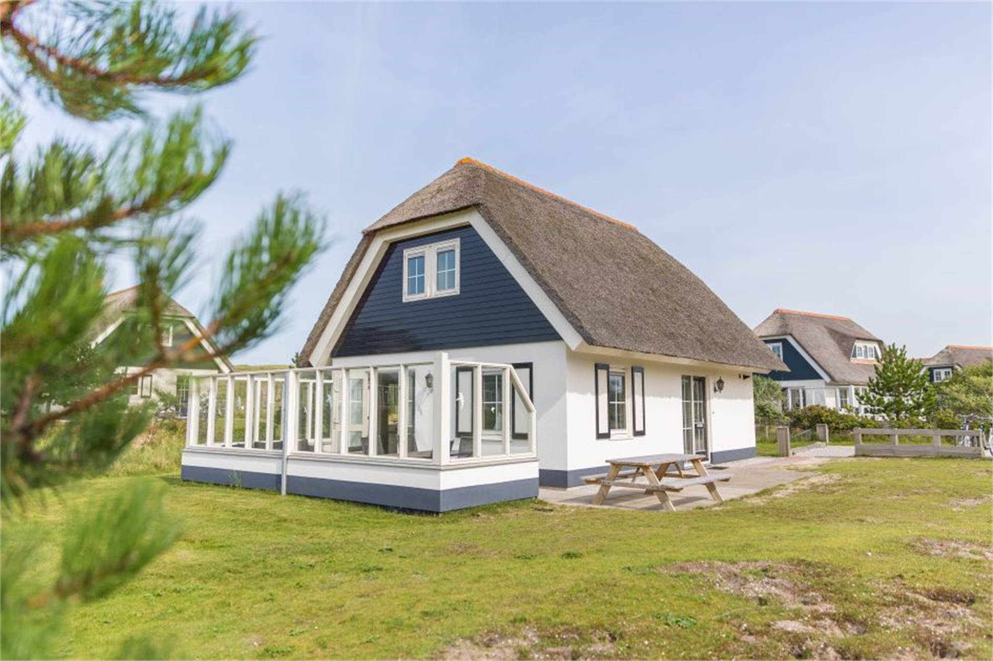 Sehr luxuriöser, freistehender Bungalow mit Rieddach. Wohnzimmer mit Flatscreen-TV und DVD-Player. Die Küche ist luxuriös ausgestattet mit Kombi-Mikrowelle und Geschirrspüler. Im Elternschlafzimmer befindet sich ein weiteres Flatscreen-TV-Gerät. Das Badezimmer unten verfügt über eine Badewanne. Außerdem bietet dieser Bungalow eine Sauna, eine Waschmaschine, einen Trockner und W-LAN-Anschluss. Für Kinder gibt es ein festes Kinderbett mit Matratze, einen Tripp-Trapp-Kinderstuhl sowie Treppengitter oben und unten. Den älteren Kindern steht eine Wii zur Verfügung. Die luxuriöse und geschützte Terrasse bietet ein modernes Lounge-Set und komfortable Gartenmöbel.