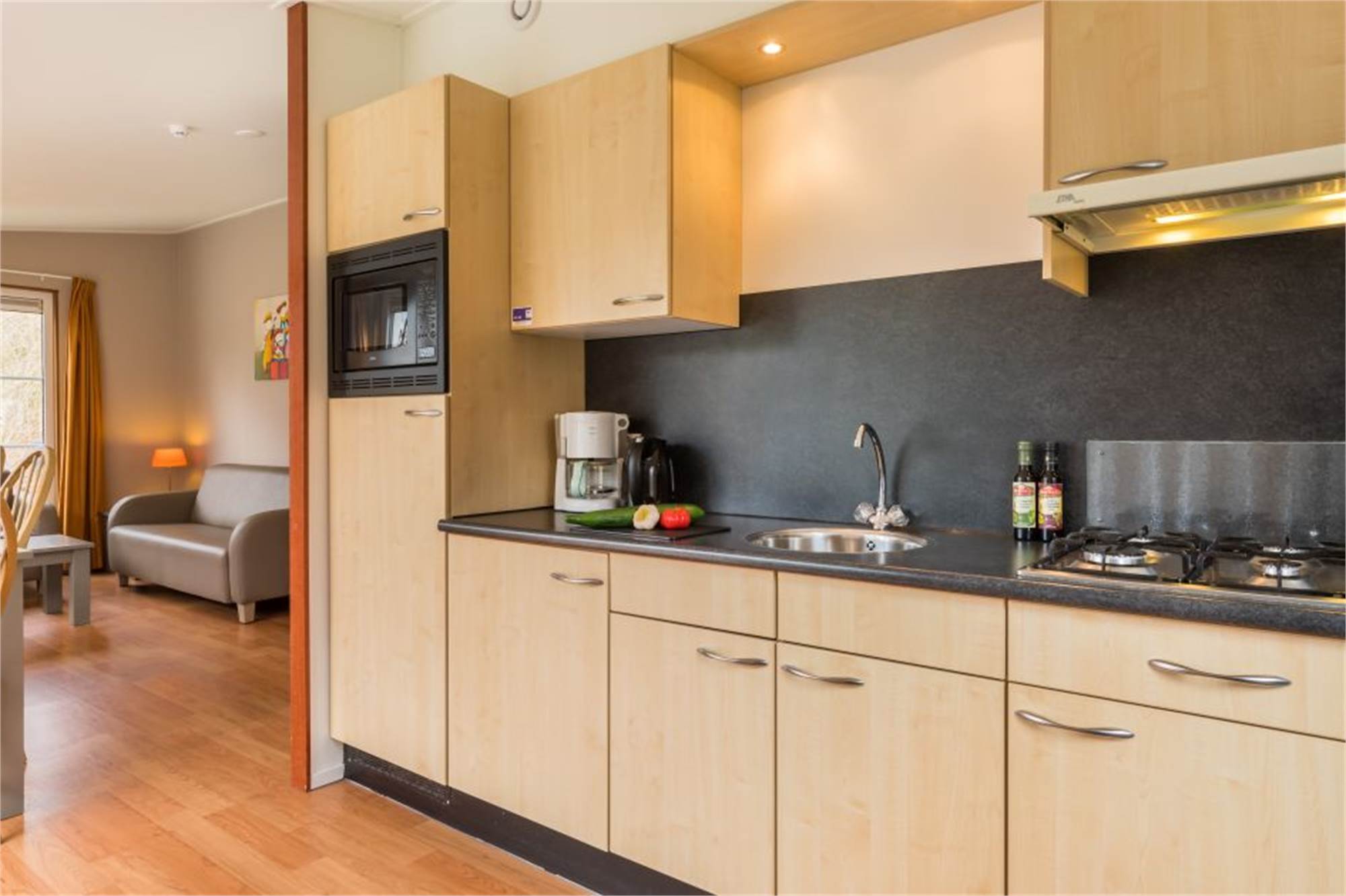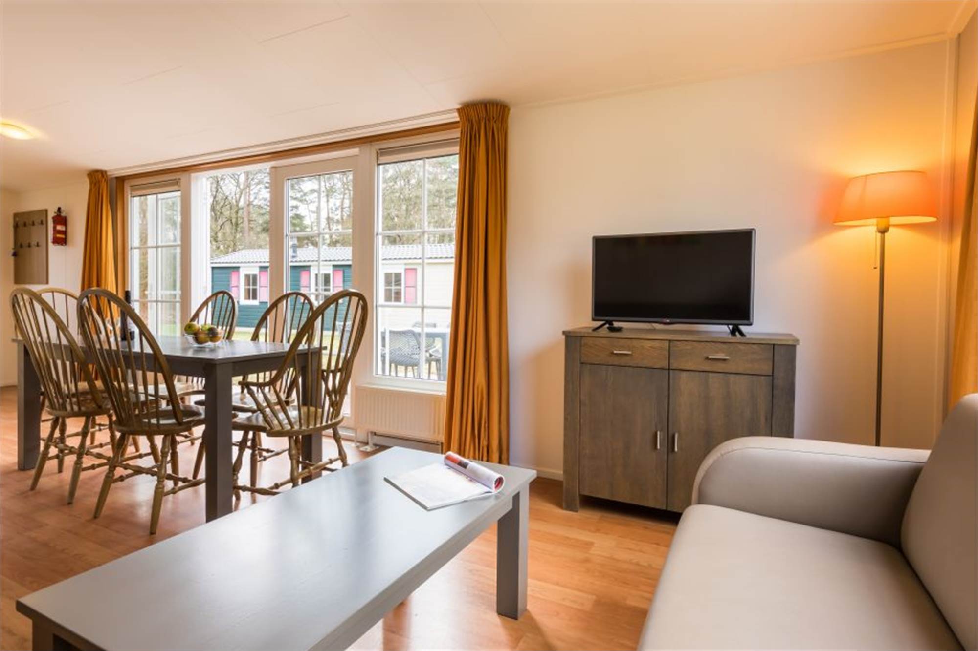 Dieses freistehende Chalet eignet sich für 6 Personen. Das Wohnzimmer verfügt über einen separaten Essbereich und die Küche ist u. a. mit Kombi-Mikrowelle und Filterkaffeemaschine ausgestattet. Außerdem gibt es 3 Schlafzimmer mit je 2 Einzelbetten, ein Badezimmer mit Dusche sowie eine separate Toilette. Im Außenbereich finden Sie eine möblierte Terrasse und die Nutzung von WiFi ist gratis.