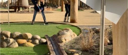 Spielen Sie in geselliger Runde mit der Familie oder Freunden eine Partie Minigolf. Was meinen Sie, wer gewinnt?