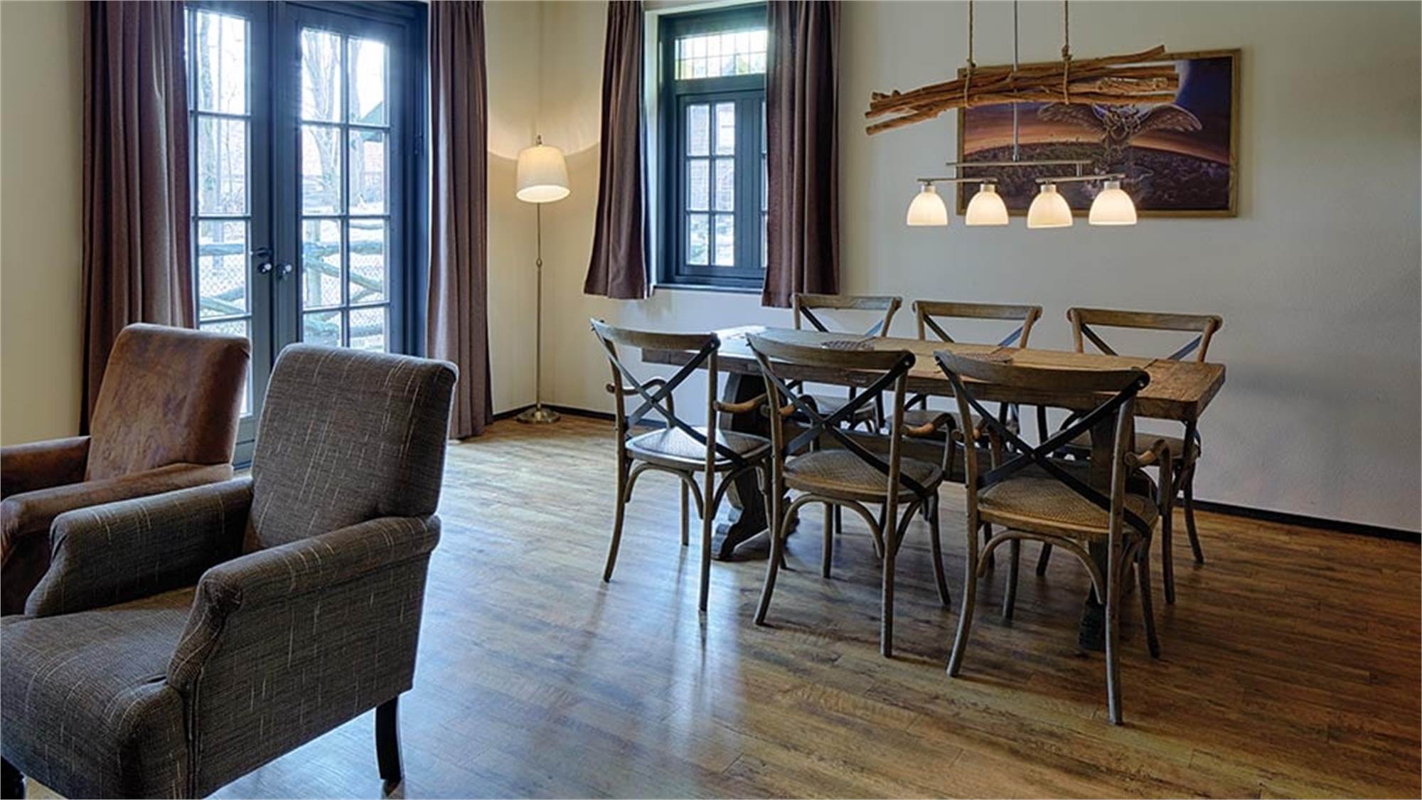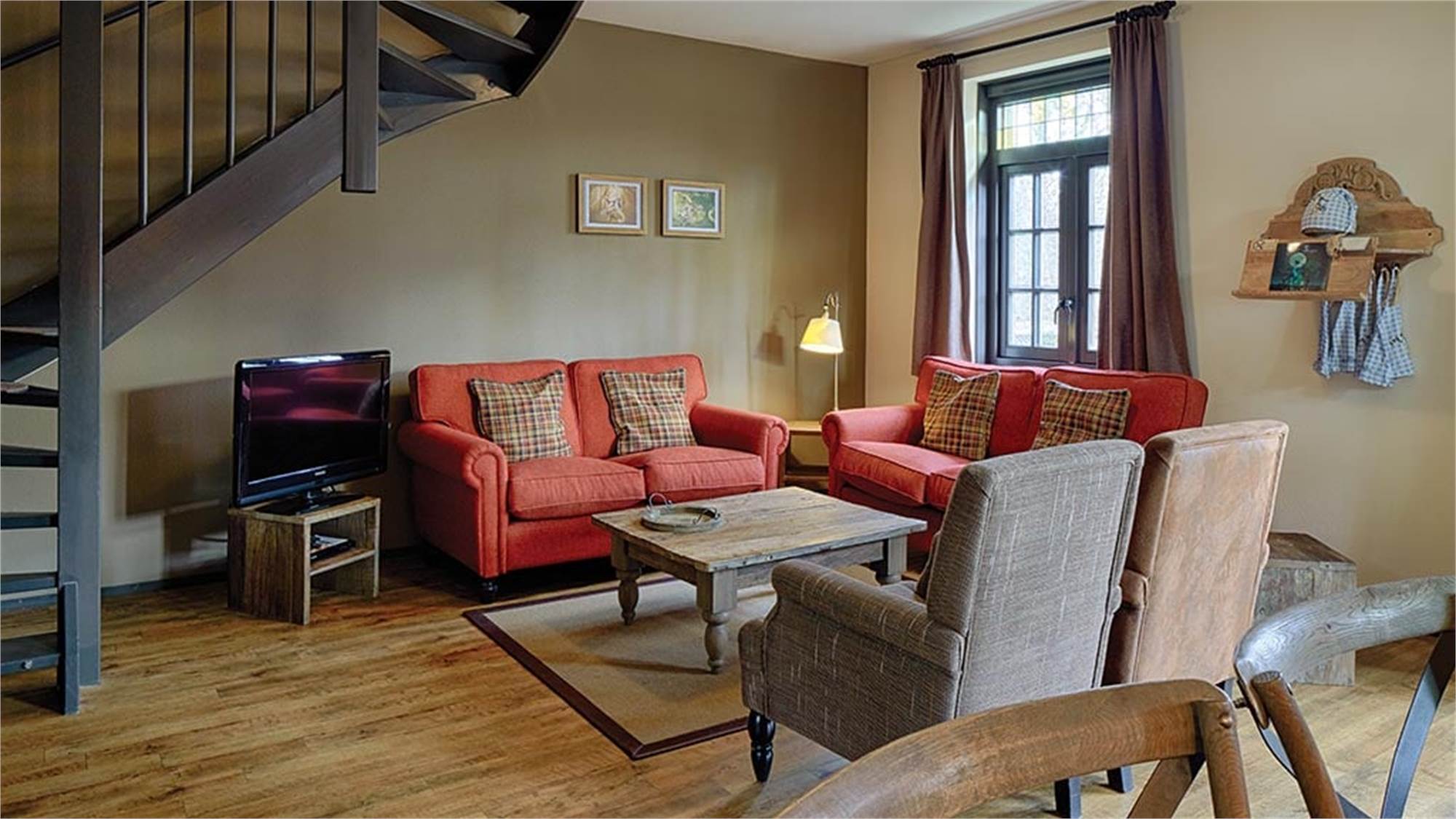 Dieses luxuriöse, geräumige und frei stehende Ferienhaus im Wald bietet jeden erdenklichen Komfort. Im Erdgeschoss verfügen Sie über ein geräumiges Wohnzimmer mit eigener Küche, Ess- und Sitzecke, über eine Toilette und haben Zugang zur Terrasse mit Sauna für 2 Personen. Drei Schlafzimmer sowie ein separates Badezimmer mit Whirlpool, begehbarer Dusche und separater Toilette erwarten Sie im 1. Stock. Bei Ihrer Anreise stehen der Prosecco und eine Überraschung für die Kinder schon für Sie bereit!
