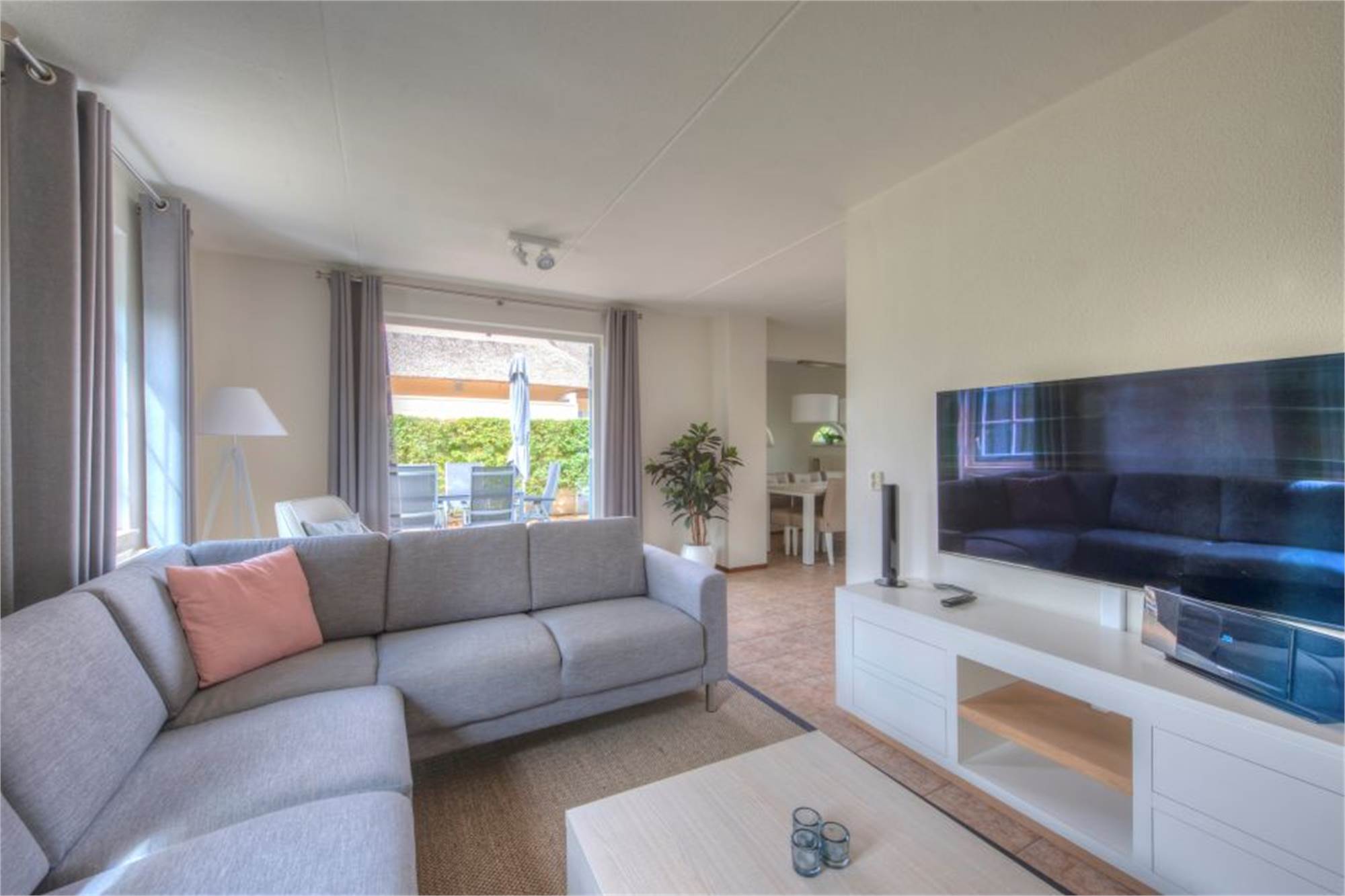 Diese restylte, freistehende Villa eignet sich für 6 Personen. Das Wohnzimmer ist mit einer separaten Essecke ausgestattet. In der offenen Küche befinden sich unter anderem eine Kombi-Mikrowelle, eine Geschirrspülmaschine und eine Kaffeemaschine. Außerdem verfügt die Villa über 3 Schlafzimmer mit Einzel-Boxspringbetten, ein Badezimmer mit Dusche und eine separate Toilette. Draußen befinden sich eine möblierte Terrasse und eine Parkmöglichkeit für 2 Autos. Sie haben die Möglichkeit WiFi gratis zu nutzen.