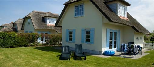 Freistehende Villa für 6 Personen mit Strohdach. 3 Schlafzimmer, 1 Badezimmer, 1 Küche mit Spülmaschine, Mikrowelle und Kühlschrank mit Gefrierfach. Das Erdgeschoss hat Fußbodenheizung. Garten mit Gartenmöbeln und 2 hölzernen Windschütze.