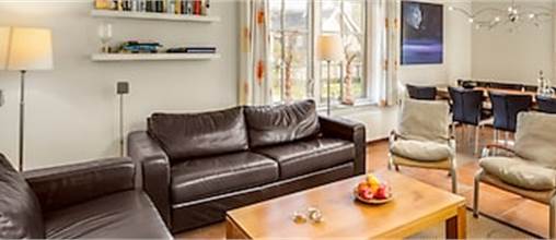Villa für 8 Personen. In der offenen Küche finden Sie einen Geschirrspüler, eine Kombi-Mikrowelle sowie einen Kühlschrank mit Gefrierfach. Wohnzimmer mit Sitz- und Essecke, offene Küche und aufschlagende Türen zur Terrasse mit Gartenmöbeln.