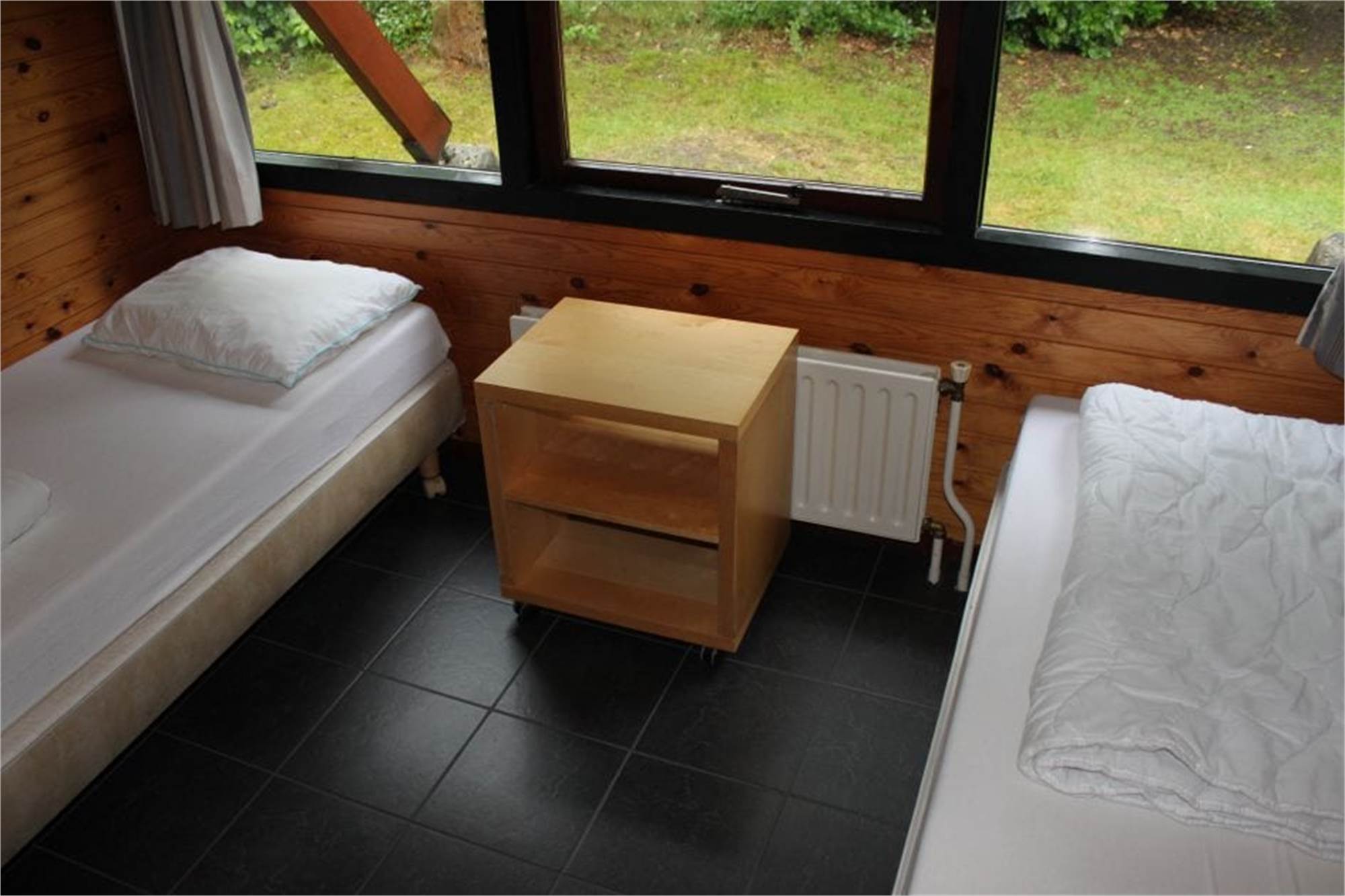Einteilung: Wohnzimmer mit Fußbodenheizung und Flatscreen-TV. Küche mit Kühlschrank mit Gefrierfach, Kaffeemaschine, Geschirrspüler und Mikrowelle. Schlafzimmer mit zwei Einzelbetten. Badezimmer mit Fußbodenheizung und Toilette. Ladestation für Elektro-Fahrräder. Terrasse mit offenem Kamin und Lage am Waldrand.