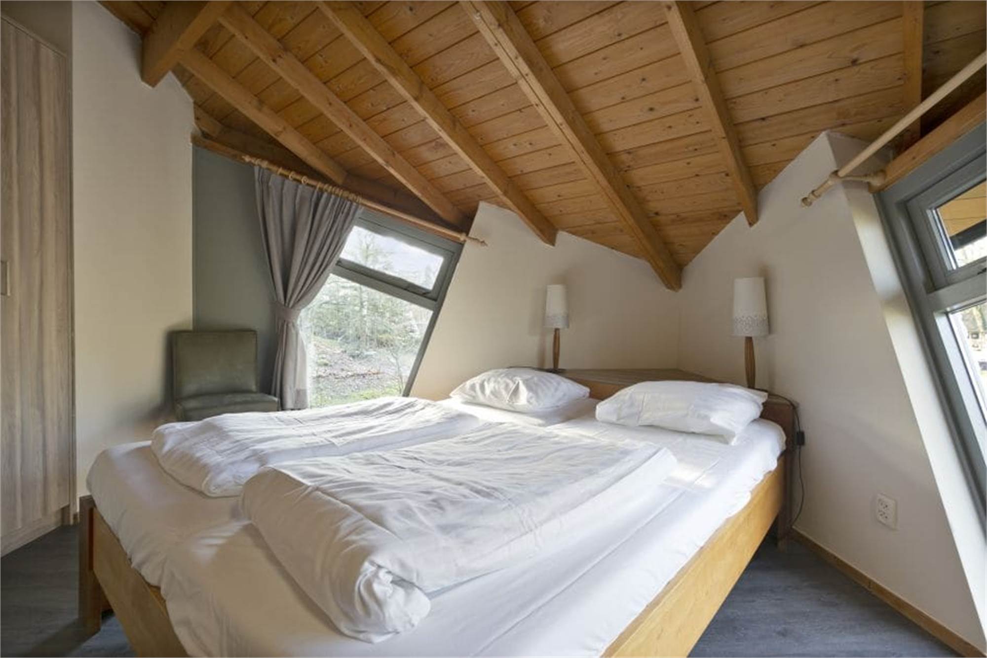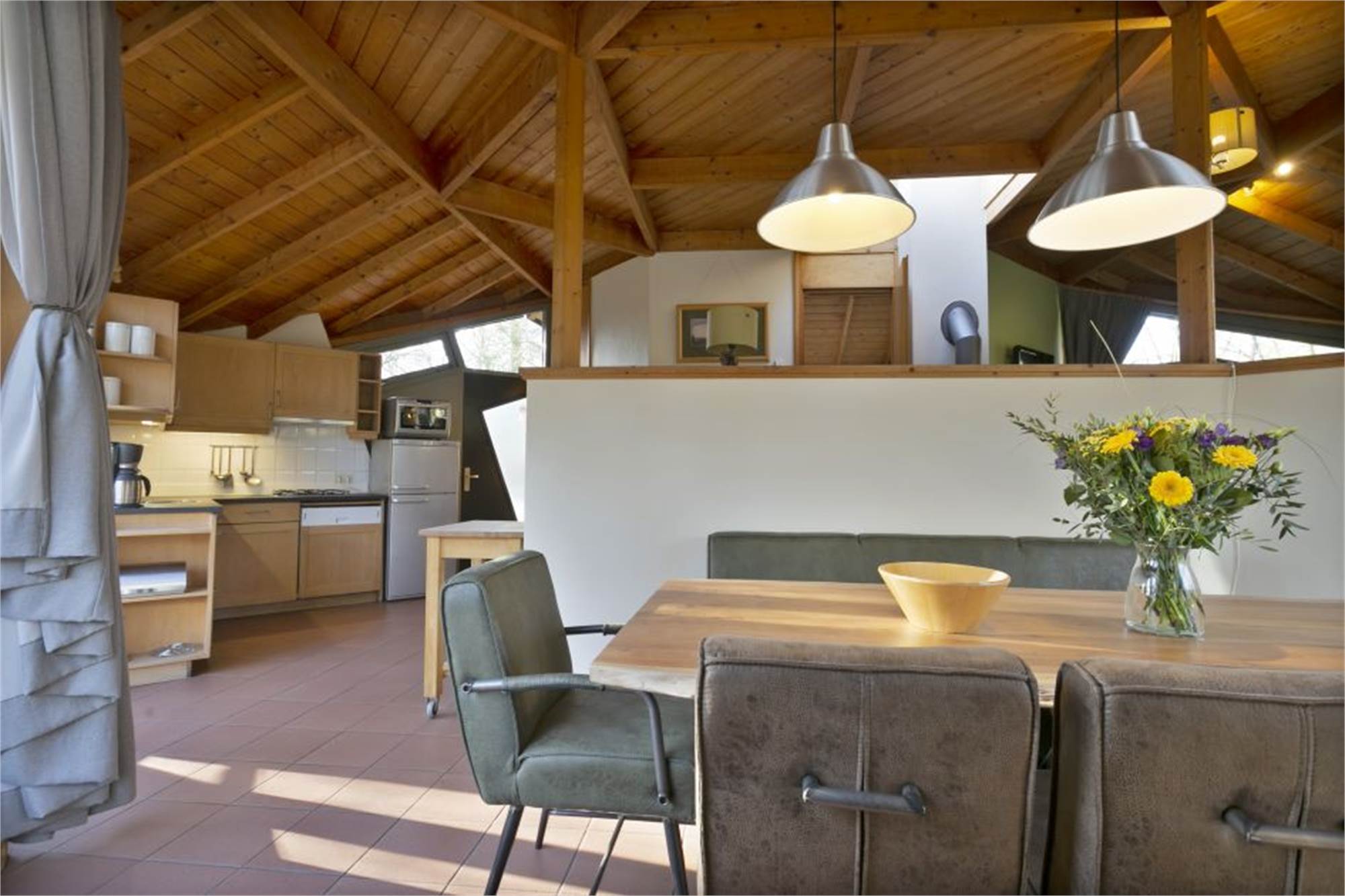 Einteilung: Wohnzimmer mit Fußbodenheizung und Flatscreen-TV. Küche mit Kühlschrank mit Gefrierfach, Geschirrspüler, Kaffeemaschine, Backofen und Kombi-Mikrowelle. Badezimmer mit Fußbodenheizung, begehbarer Dusche und Badewanne. Separate Toilette. Ladestation für Elektro-Fahrräder. Terrasse und Lage am Waldrand.