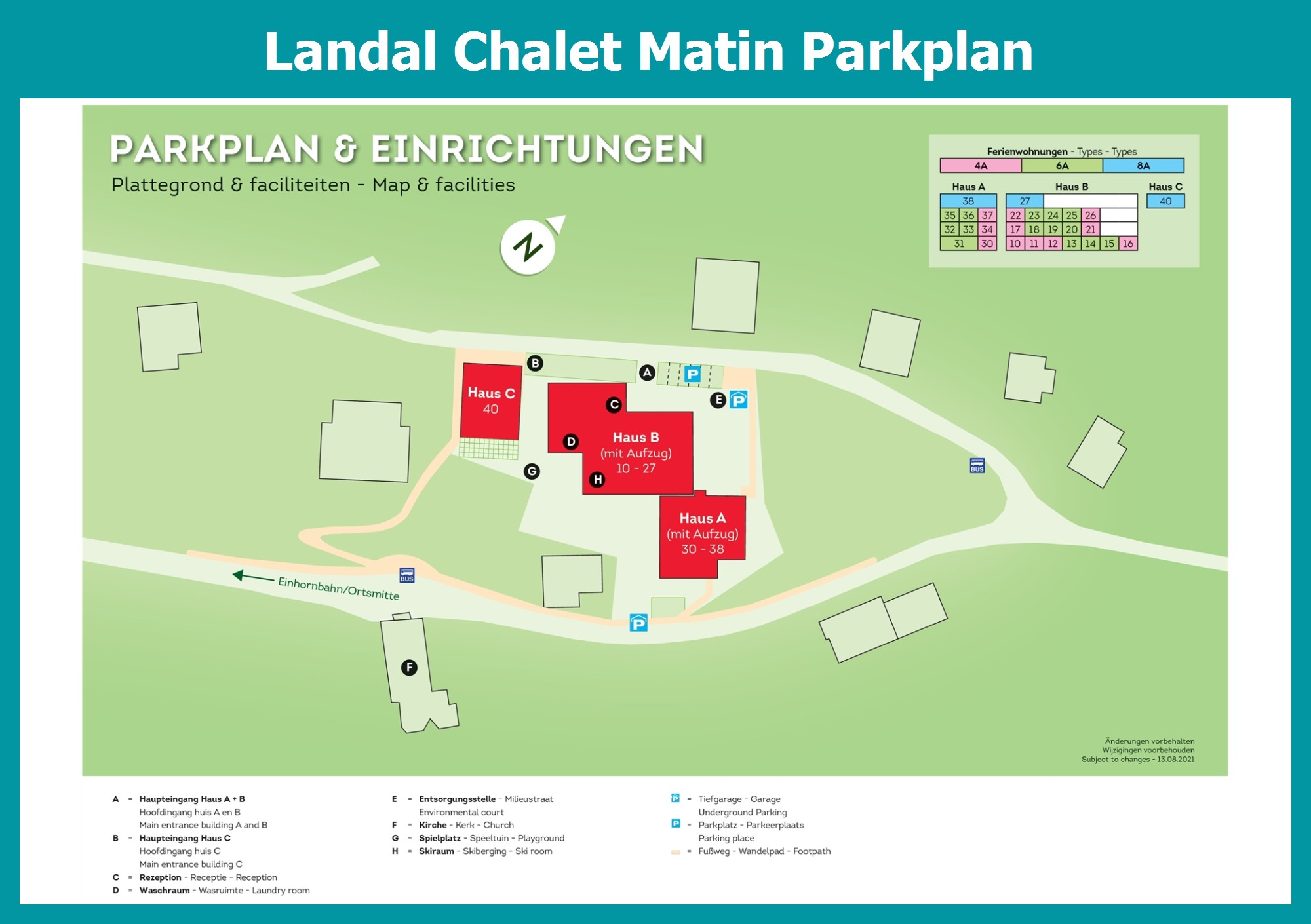 Aktueller und übersichtlicher Parkplan von Landal Chalet Matin mit alle Unterkünfte und Einrichtungen, auch als PDF herunterladbar.