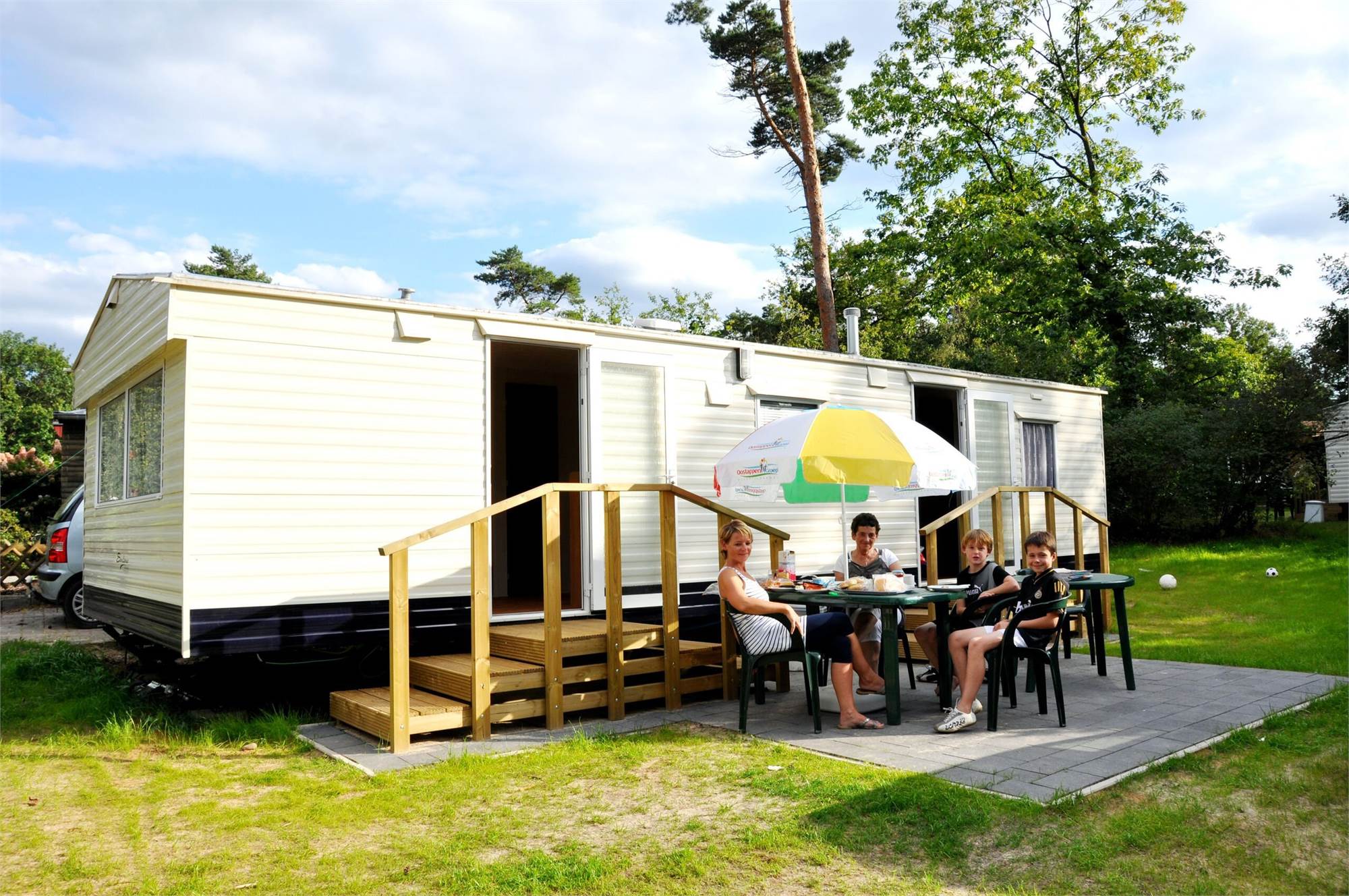 Ein Mobilheim ist ideal für den Aufenthalt, wenn Sie während Ihres Urlaubs mehr Luxus wünschen. Das wunderbare Urlaubsgefühl, bei dem man nichts aufstellen oder mitnehmen muss. Ihr Mobilheim ist immer mit einer möblierten Sitzecke mit Fernseher und Herd, einer Küche mit Kühlschrank, Mikrowelle, Kaffeemaschine, 4-Flammen-Herd und Kücheninventar, einem Badezimmer mit Toilette, Waschbecken und Dusche und einem kompletten Gartenset mit Sonnenschirm der 'Oostappen Gruppe' ausgestattet.