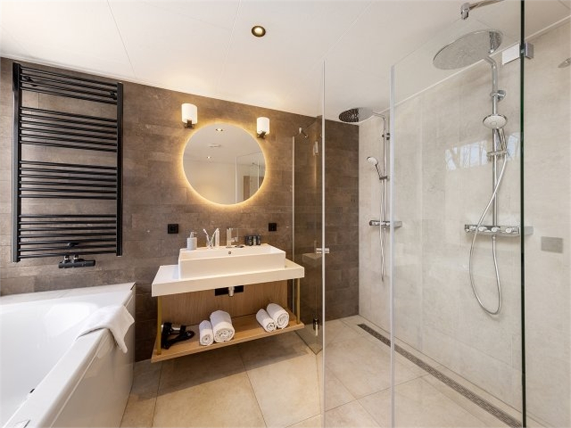 Eleganz und Luxus kombiniert mit einer privaten Sauna, einem entspannenden Whirlpool, einem großen Wellnessbad und mehr.