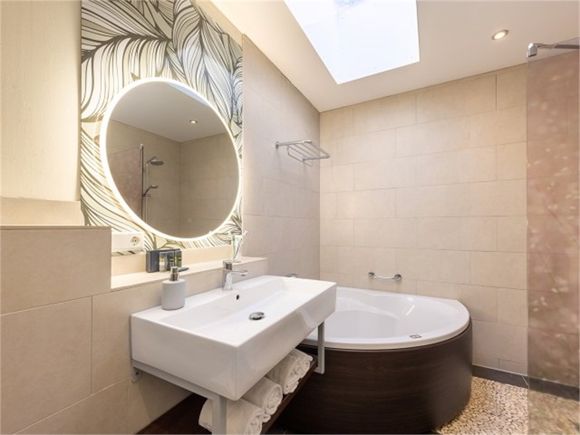 Durch die große Schiebetür wird Ihr Eden-Ferienhaus mit Sonnenlicht durchflutet. Öffnen Sie die Tür - und ihr Wohnzimmer verschmilzt mit dem Garten. Ein Traum! Genießen Sie den großzügigen Freiraum und den Komfort. Entspannen Sie am Kamin und werfen Sie den Grill an - für einen langen Sommerabend.