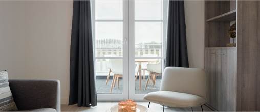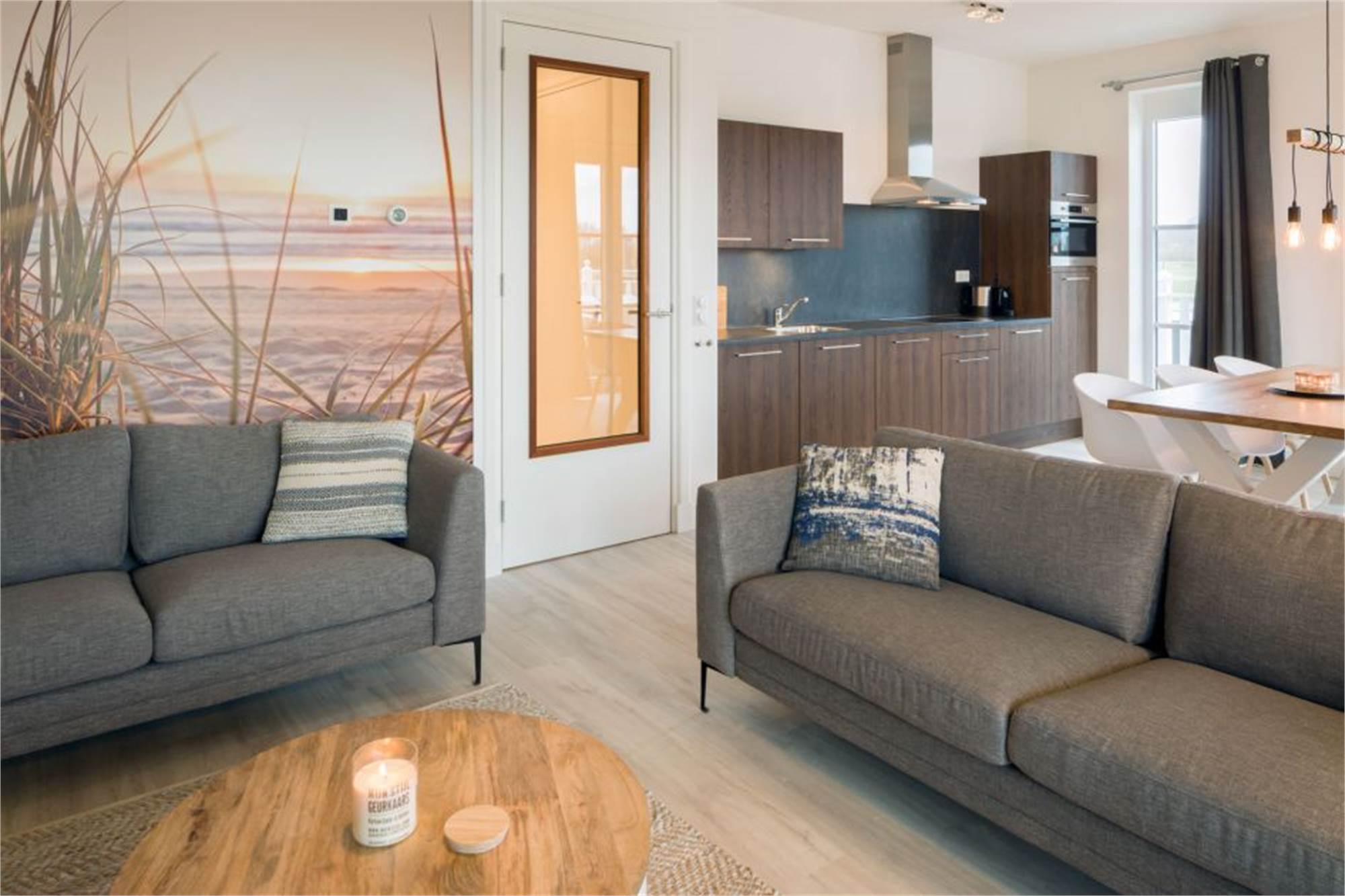 Dieses ebenerdige Appartement befindet sich im ersten Stock und eignet sich für 6 Personen. Das Wohnzimmer verfügt über eine Sitzecke mit Smart-TV und grenzt an die offene Küche mit Essecke. In der Küche befinden sich unter anderem eine Geschirrspülmaschine, eine Kombi-Mikrowelle und eine Kaffeepadmaschine. Es sind 3 Schlafzimmer mit jeweils 2 Einzelbetten sowie ein Badezimmer en suite mit bodengleicher Regendusche vorhanden. Im Flur befinden sich eine separate Toilette und ein Abstellraum mit Waschmaschine und Trockner. Das Appartement besitzt einen überdachten Balkon mit Gartenmobiliar und einen zweiten Balkon an der Rückseite. In nächster Nähe gibt es einen zentralen Parkplatz. Sie können kostenlos das WiFi nutzen.