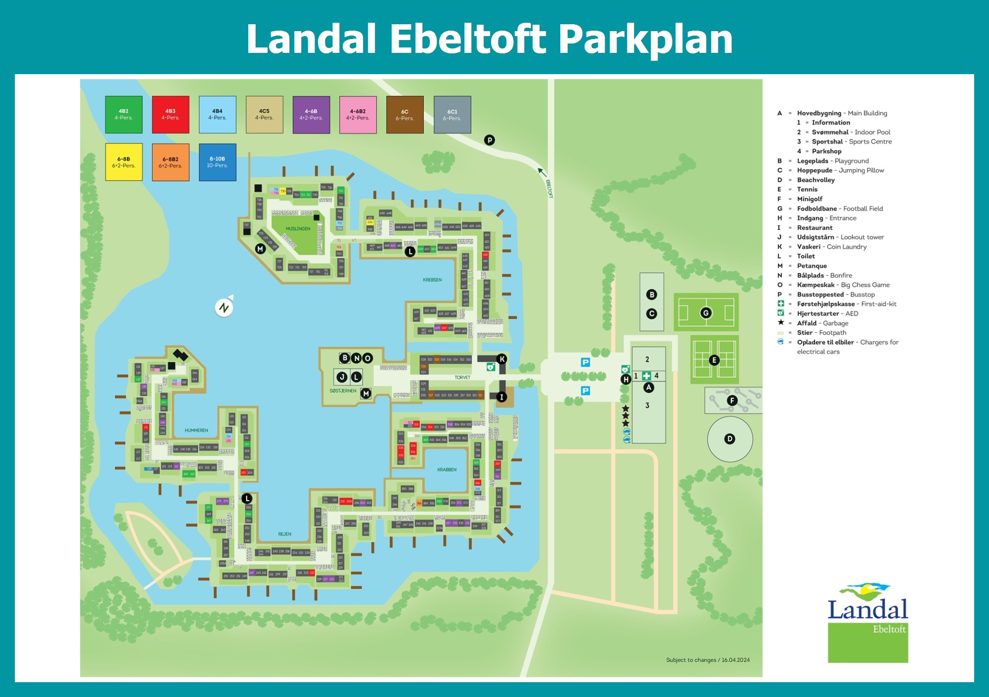 Aktueller und übersichtlicher Parkplan von Landal Ebeltoft mit alle Unterkünfte und Einrichtungen, auch als PDF herunterladbar.