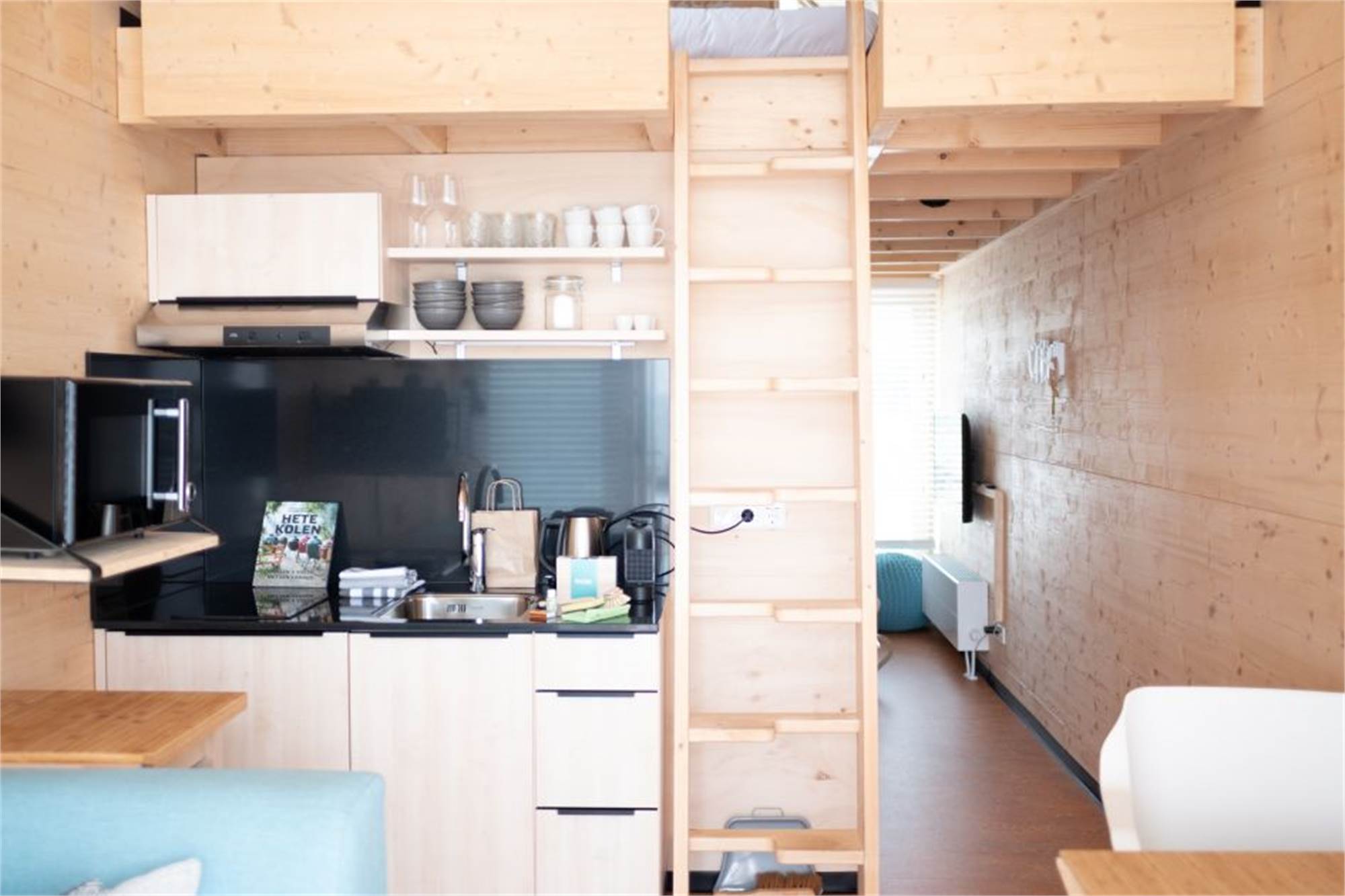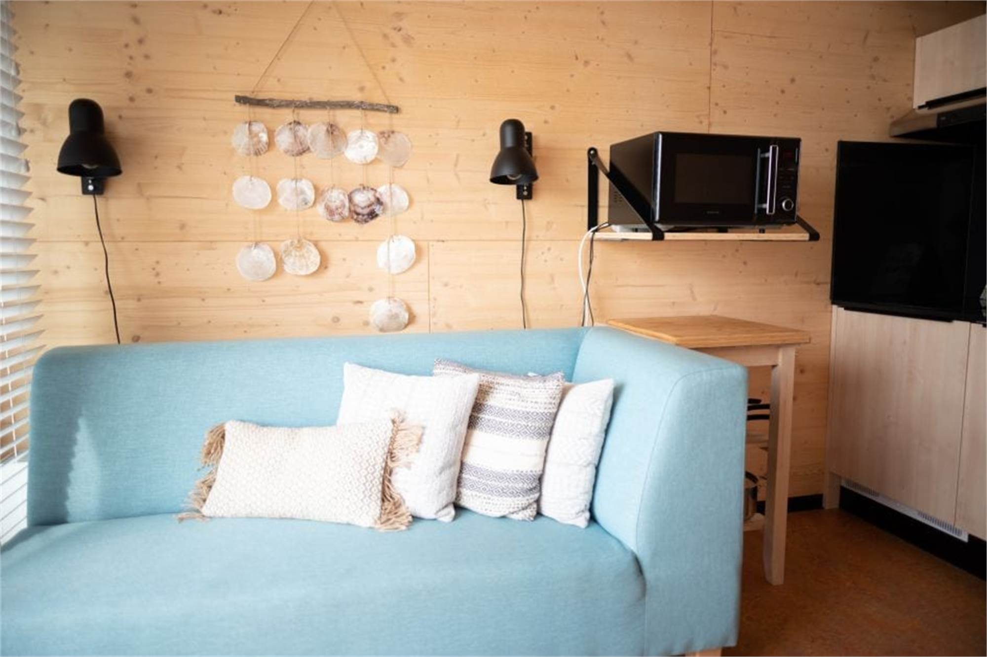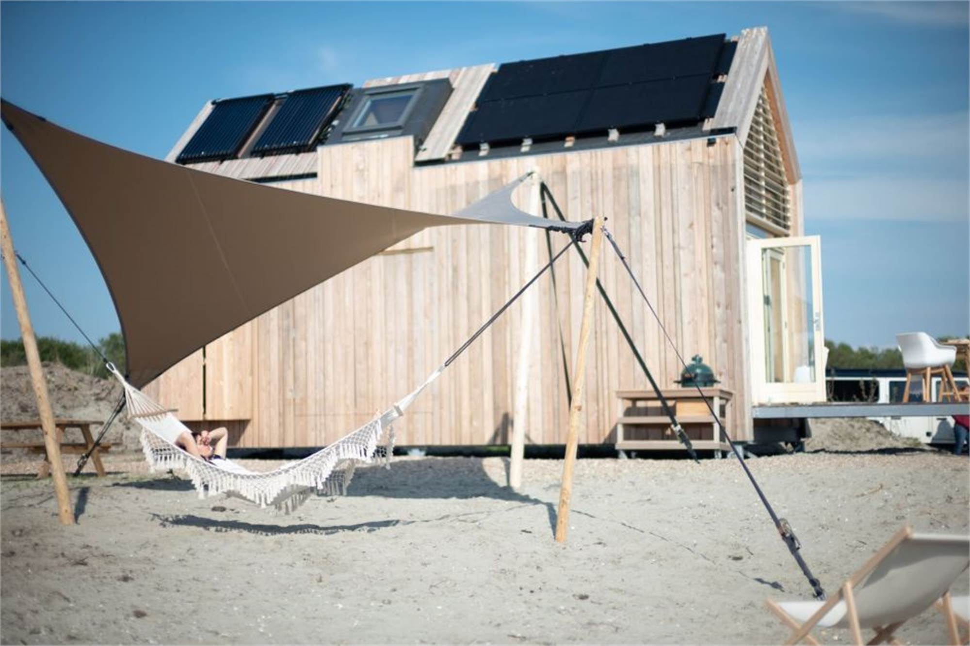 Diese umweltfreundliche Lodge ist für 4 Personen geeignet. Im Wohnzimmer befindet sich eine Sitzecke und eine Essecke. Die Küche ist mit einem Kühlschrank mit Gefrierfach, einer Kombi-Mikrowelle, einer Kaffeekapselmaschine, einem Wasserkocher und einem 2-Flammen-Kochfeld ausgestattet. Über eine Holztreppe gelangst du auf den Boden mit zwei Einzelbetten. Kommst du mit drei oder vier Personen? Nutze dann auch das Klappbett. Es ist dann allerdings kein Platz mehr für ein Babybett. Das Schlafzimmer im Erdgeschoss verfügt über einen Smart-TV. Das Badezimmer verfügt über ein Waschbecken und eine Dusche. Es ist ein separates WC vorhanden. Zur Lodge gehören ein Garten mit Gartenmöbeln, eine Hängematte und eine Aussicht auf das Wasser. Es steht kostenloses WiFi zur Verfügung.