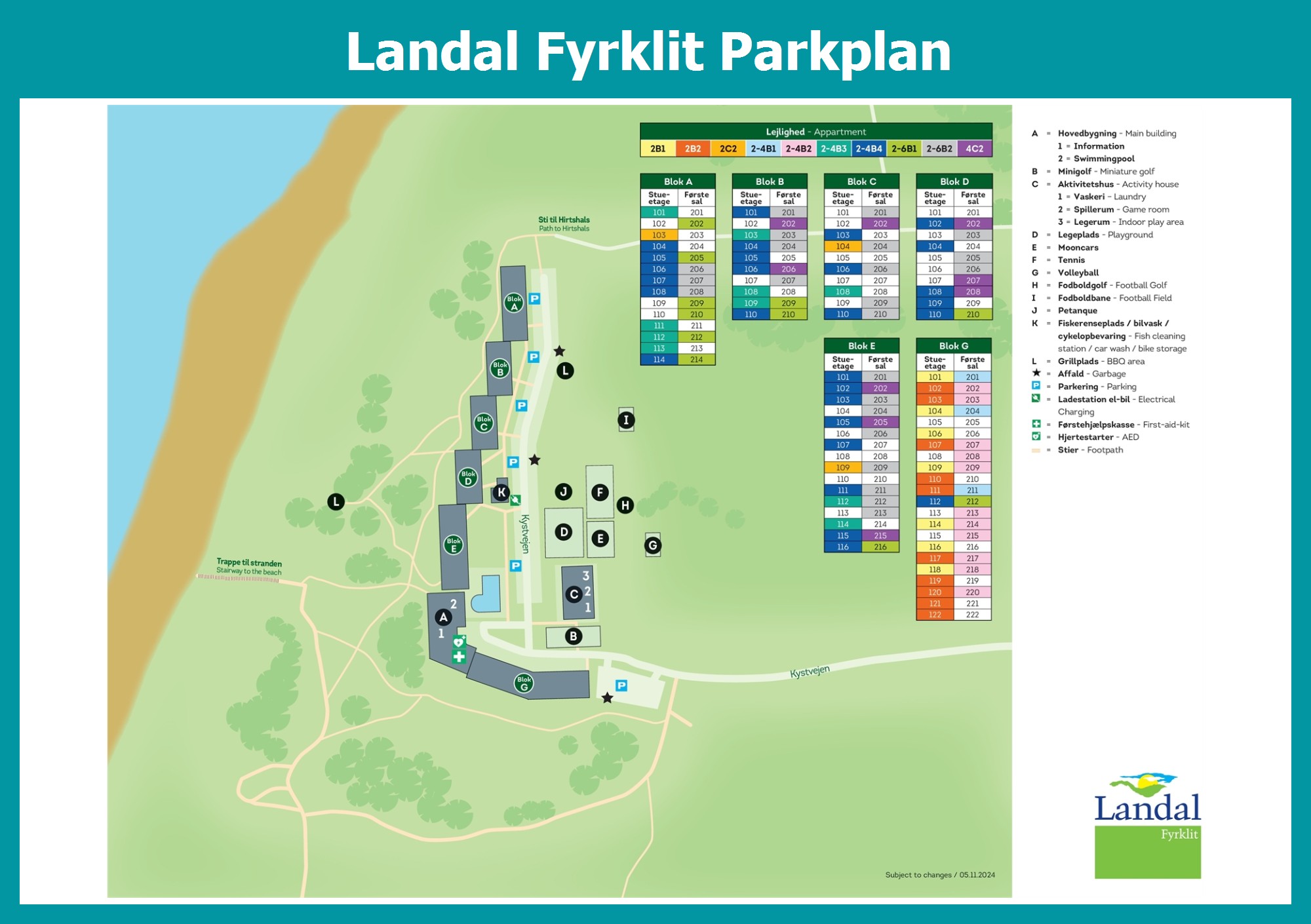 Aktueller und übersichtlicher Parkplan von Landal Fyrklit mit alle Unterkünfte und Einrichtungen, auch als PDF herunterladbar.