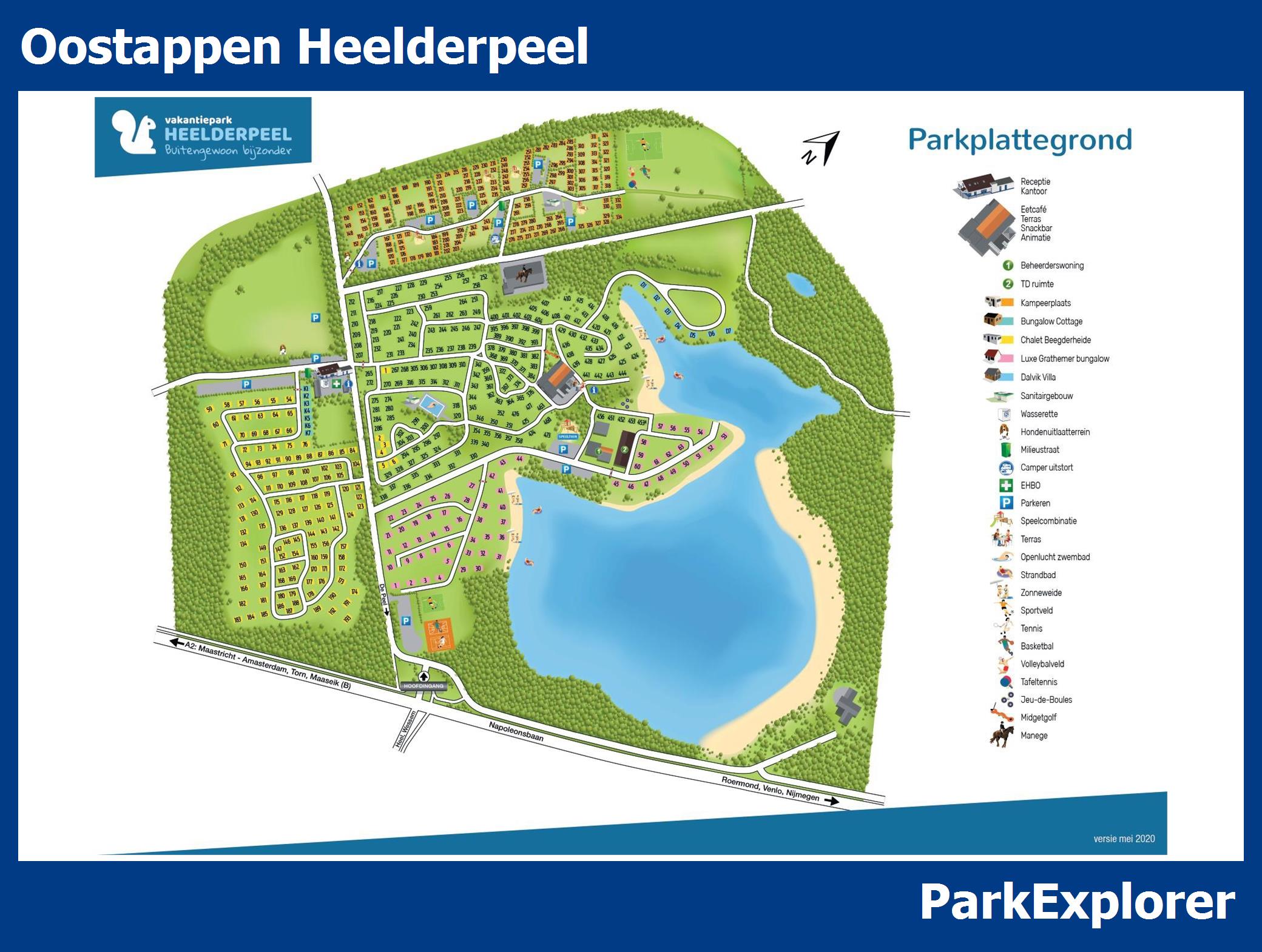 Aktueller und übersichtlicher Parkplan von Oostappen Heelderpeel mit alle Unterkünfte und Einrichtungen, auch als PDF herunterladbar.