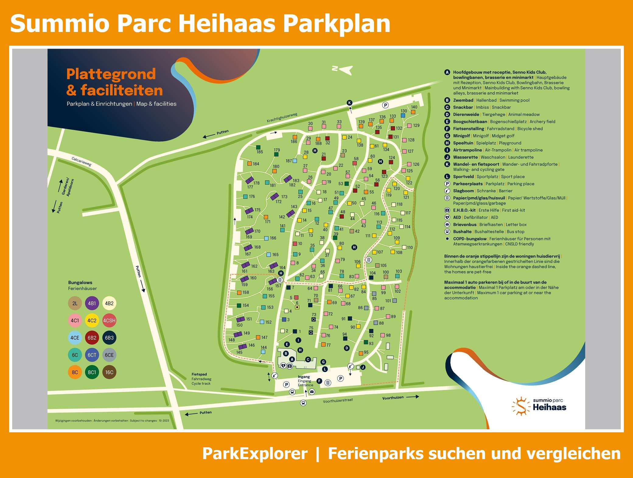 Aktueller und übersichtlicher Parkplan von Summio Parc Heihaas mit alle Unterkünfte und Einrichtungen, auch als PDF herunterladbar.