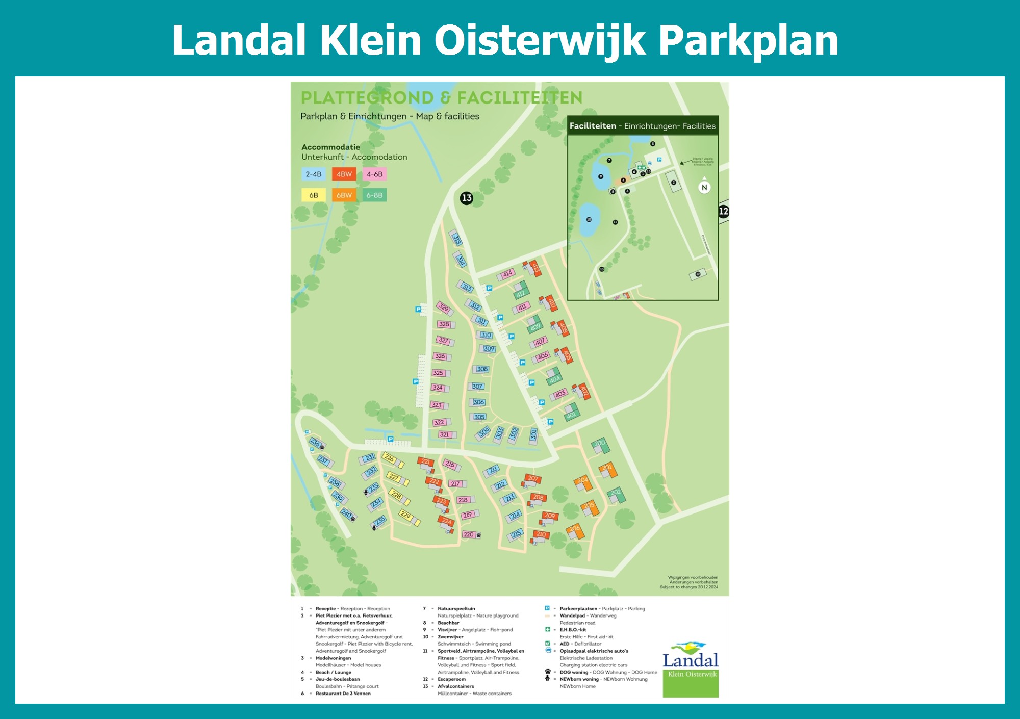 Aktueller und übersichtlicher Parkplan von Landal Klein Oisterwijk mit alle Unterkünfte und Einrichtungen, auch als PDF herunterladbar.