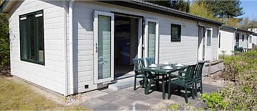 Dieses freistehende Chalet eignet sich für 4 Personen. Es gibt ein Wohnzimmer mit Essbereich und eine offene Küche sowie 2 Schlafzimmer und ein Badezimmer mit Dusche und Waschtisch. Außerdem finden Sie eine separate Toilette. Durch die Flügeltüren im Wohnzimmer gelangen Sie auf die möblierte Terrasse. Die Nutzung von WiFi ist gratis.