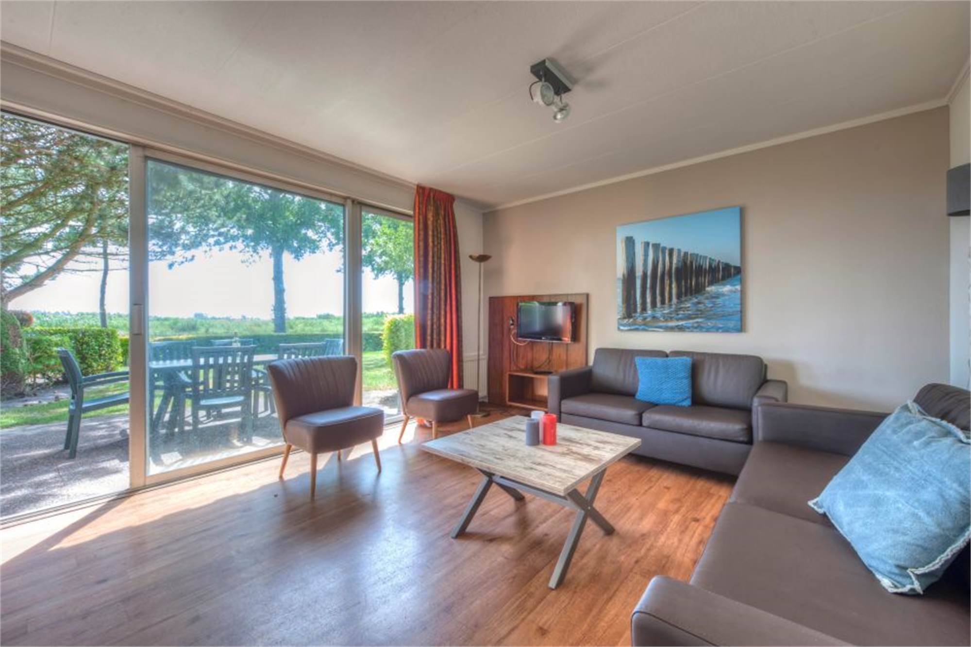 Freistehender Bungalow für 6 Personen. Im Erdgeschoss finden Sie einen Wohn- und Essbereich sowie eine offene Küche mit Kühl-/Gefrierkombination und Kaffeemaschine. Außerdem gibt es im Erdgeschoss ein Schlafzimmer mit zwei Einzelbetten, ein Badezimmer mit Dusche und eine separate Toilette. Im Obergeschoss finden Sie 2 weitere Schlafzimmer mit je 2 Einzelbetten. Gartenmöbel sind vorhanden und die Nutzung von WiFi ist gratis.