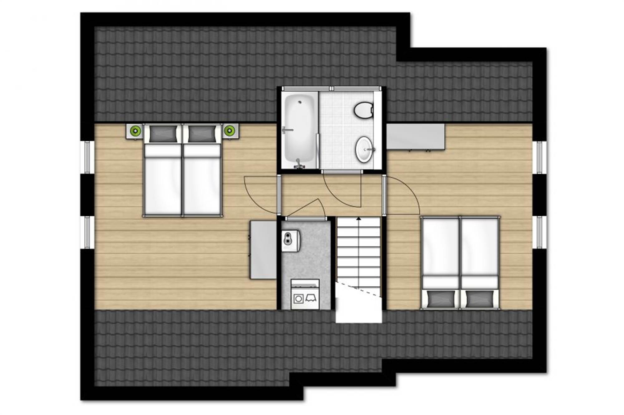 Dieser Bungalow in ruhiger Lage eignet sich für 8 Personen. Im Erdgeschoss befindet sich ein stilvolles Wohnzimmer mit Holzofen eine Küche und eines Badezimmer. Die angrenzende Küche ist mit Kühlschrank mit Gefrierfach, Kombi-Mikrowelle und Geschirrspüler ausgestattet. Das Kellergeschoss ist über eine Treppe erreichbar und bietet 2 Schlafzimmer mit insgesamt 4 Einzel-Boxspringbetten und eine Infrarotsauna. In der oberen Etage befinden sich 2 weitere Schlafzimmer mit insgesamt 4 Einzel-Boxspringbetten. Ein Schlafzimmer ist mit eigenem TV-Gerät ausgestattet und das Badezimmer dort hat eine Badewanne und eine Toilette. Der Bungalow ist darüber hinaus mit Waschmaschine ausgestattet. Im Außenbereich finden Sie einen schönen Garten mit möblierter Terrasse und eine Parkmöglichkeit für ein Auto. Die Nutzung von WiFi ist gratis.
