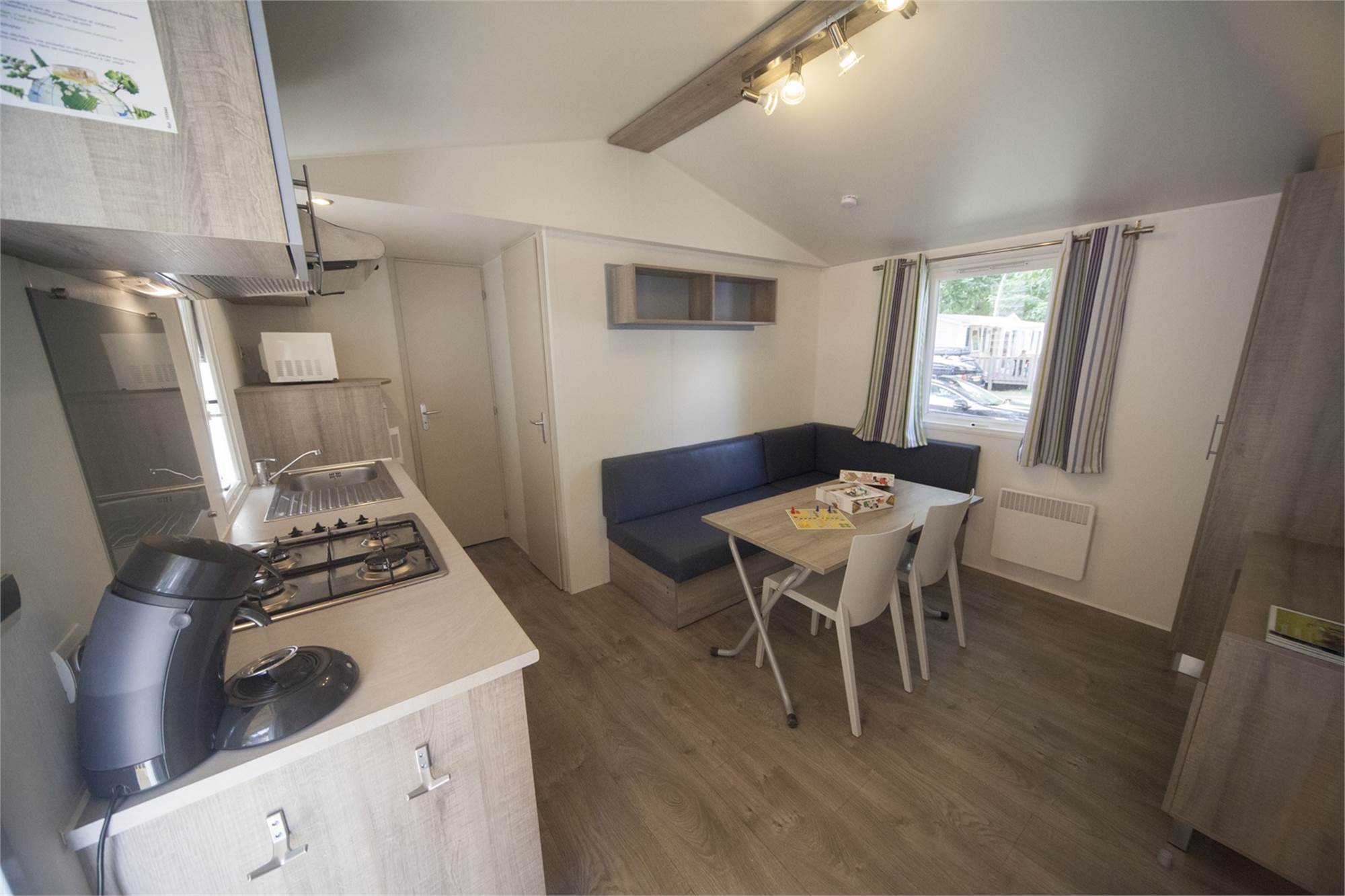 Ausstattungsmerkmale Extérieur Terrassenmöbel Holzterrasse Veranda Grill Audio/Video/Elektronik Internet WIFI im Park InternetWIFI in der Unterkunft Küche Kaffeemaschine Kühlschrank mit Gefrierfach Moderne offene Küche 4-flammiger Gasherd Mikrowellenherd Schlafen Deckbetten Zimmer mit 2 Einzelbetten Zimmer mit einem Doppelbett Anzahl Schlafzimmer: 2 Sanitäranlagen Dusche Separate Toilette Duschkabine Badezimmer im Erdgeschoss Waschbecken im Badezimmer Sondermerkmale Haustiere gestattet Rauchfrei