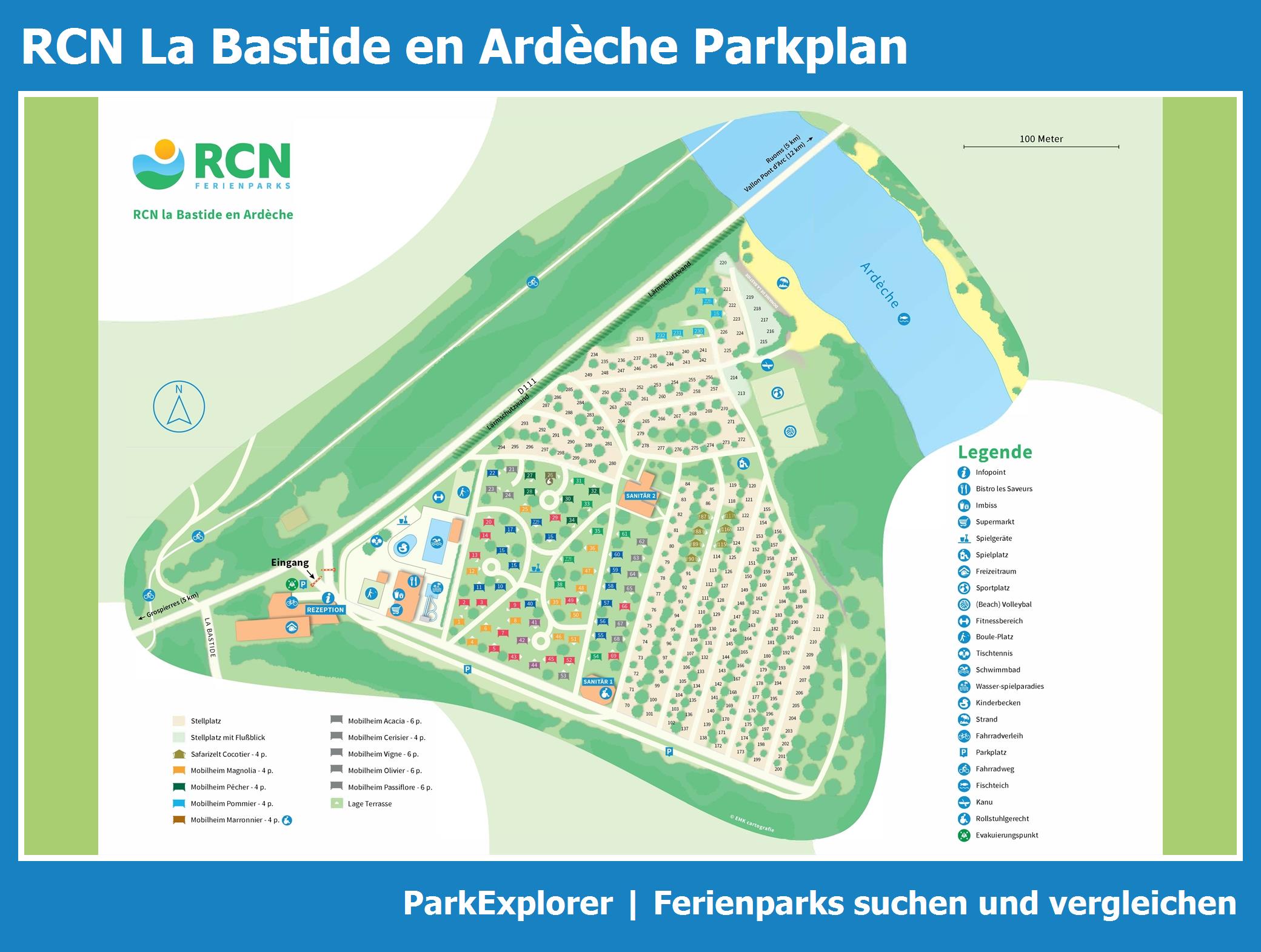 Aktueller und übersichtlicher Parkplan von RCN La Bastide en Ardèche mit alle Unterkünfte und Einrichtungen, auch als PDF herunterladbar.