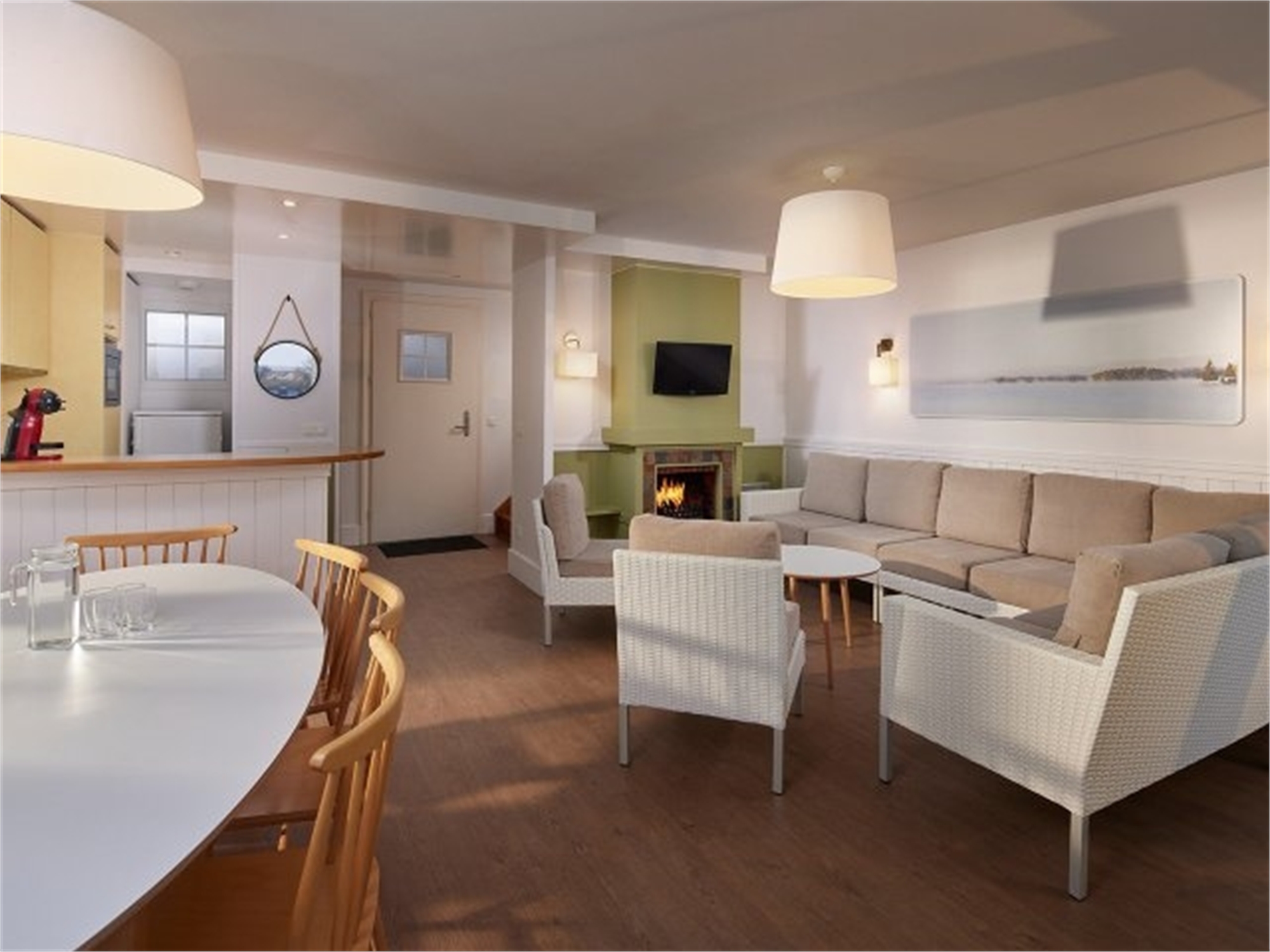 Von Ihrer überdachten Privatterrasse schweift Ihr Blick über den See. Alle Häuser des Typs Ferienhaus am See liegen direkt am Wasser. Das Panorama genießen Sie auch von innen durch die großen Fenster!