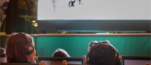 Machen Sie es sich draußen gemütlich und genießen Sie die Sonne, während Sie einen guten Film in unserem Stummfilmkino sehen. Setzen Sie Ihre Kopfhörer auf und genießen Sie!