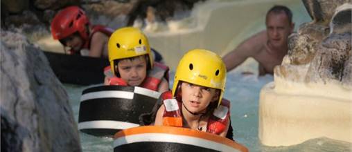 Ausgerüstet mit Bodyboard und Helm geht es unter den wachsamen Augen des Trainer-Teams die wilde Flussfahrt hinunter. Superspaß garantiert!
