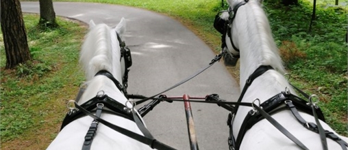 Haben Sie Lust auf eine Spazierfahrt in der Kutsche? Bewundern Sie die Natur und entdecken Sie die Wege des Parks, während Sie auf bequemen Bänken sitzen und die Aussicht in aller Ruhe genießen. Die Pferde kennen den Weg ...