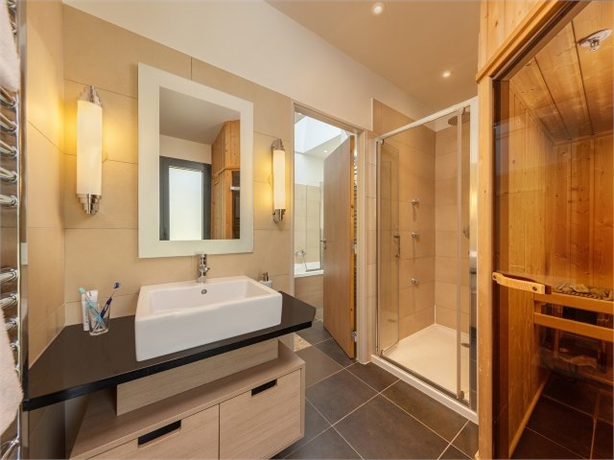 Wenn du dich wirklich verwöhnen möchtest, dann wähle ein VIP-Ferienhaus. Deine Betten sind bei der Ankunft bereits bezogen und Handtücher liegen in deinem Ferienhaus bereit. Genieße das luxuriöse Badezimmer mit Handseife und Duschgel.