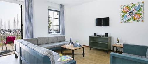 Diese Familienvilla für 11 Personen bietet einen Blick über den Jachthafen. Es gibt ein großes Wohzimmer mit Essbereich, eine offene Küche mit Spülmaschine und eine separate Toilette. Über die Gartentüren gelangen Sie auf die möblierte Terrasse. Auf der 1. Etage befinden sich 3 Schlafzimmer mit Boxspringbetten und 1 Badezimmer mit Badewanne. Auf der 2. Etage befinden sich noch 1 Schlafzimmer und 1 Badezimmer mit Dusche. Der WiFi können Sie kostenlos nutzen.