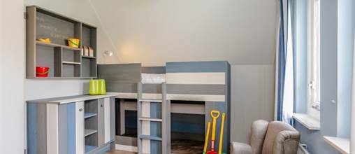Kinderspiel-/schlafzimmer mit einem Hochbett und einem Boxspring-Einzelbett auf der ersten Etage