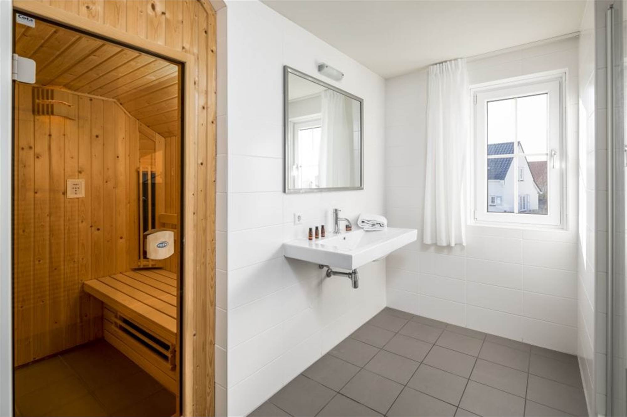 Diese luxuriöse freistehende Villa eignet sich für 4 Personen. Über den Flur erreichen Sie das helle Wohnzimmer mit Fußbodenheizung und Flügeltüren zur beheizten Terrasse. Eine vollständig eingerichtete Küche mit Geschirrspüler, Kombi-Mikrowelle und Kühl-/Gefrierkombination sowie ein Abstellraum und eine separate Toilette befinden sich im Erdgeschoss. Im Obergeschoss befinden sich zwei Schlafzimmer, davon eins mit TV, ein Badezimmer mit Dusche, eine Infrarotsauna und eine separate Toilette. Wenn Sie Fahrräder mit in den Urlaub bringen, können Sie diese im Fahrradschuppen unterstellen. Die Nutzung von WiFi ist gratis.