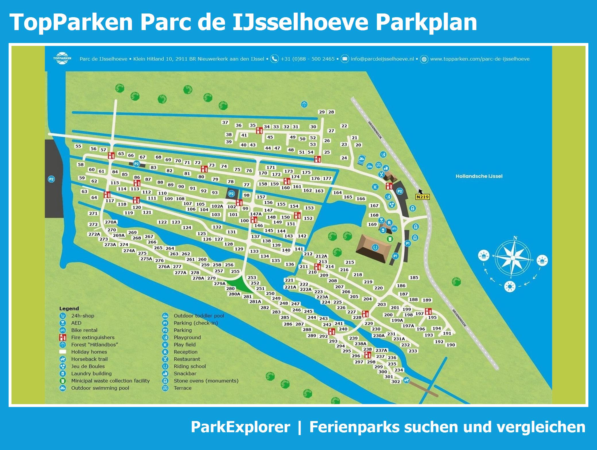 Aktueller und übersichtlicher Parkplan von TopParken Parc de IJsselhoeve mit alle Unterkünfte und Einrichtungen, auch als PDF herunterladbar.