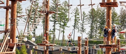 Verschiedene herausfordernde Parcours in 1 bis 8 m Höhe (unter 10 Jahren max. 4 m Höhe) warten auf Wagemutige in unserem beeindruckenden Hochseilgarten mit spannenden Kletterelementen und diversen Seilrutschen. Nach der Einweisung klettert ihr unter Aufsicht erfahrener Kletter-Instuktoren ohne Zeitbeschränkung. Bucht jetzt und klettert bei einer Session eurer Wahl.