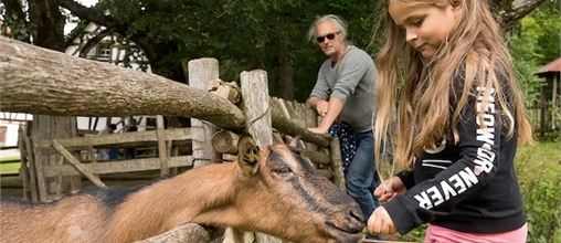 Bei einer interaktiven Führung durch das Bauernhaus-Museum Allgäu-Oberschwaben in der Gemeinde Wolfegg lernen Kinder wie Erwachsene die zum Teil freilaufenden Museumstiere kennen.