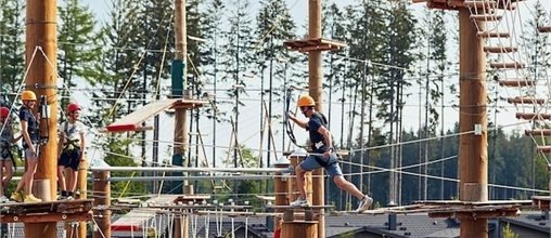 Verschiedene Parcours in 1, 4 und 8 Metern Höhe warten auf Wagemutige in diesem beeindruckenden Hochseilgarten mit Kletterelementen und kurzen Seilrutschen. Anders als in üblichen Hochseilgärten gibt es hier nicht nur einen Rundweg, sondern Sie können während Ihrer 90-minütigen Aktivität nach einer Übungsrunde sogar beliebig die Richtung wechseln!