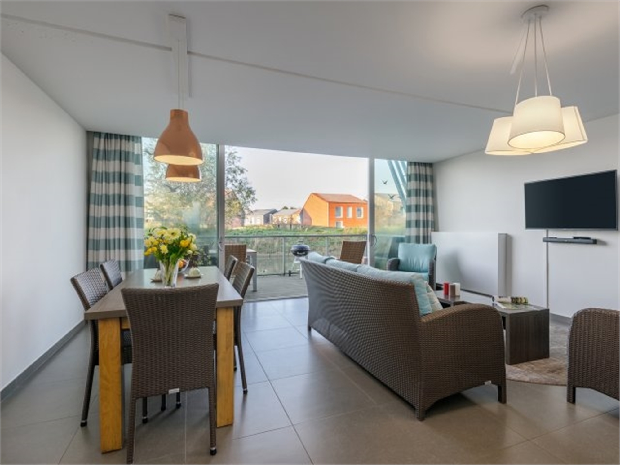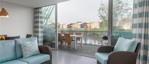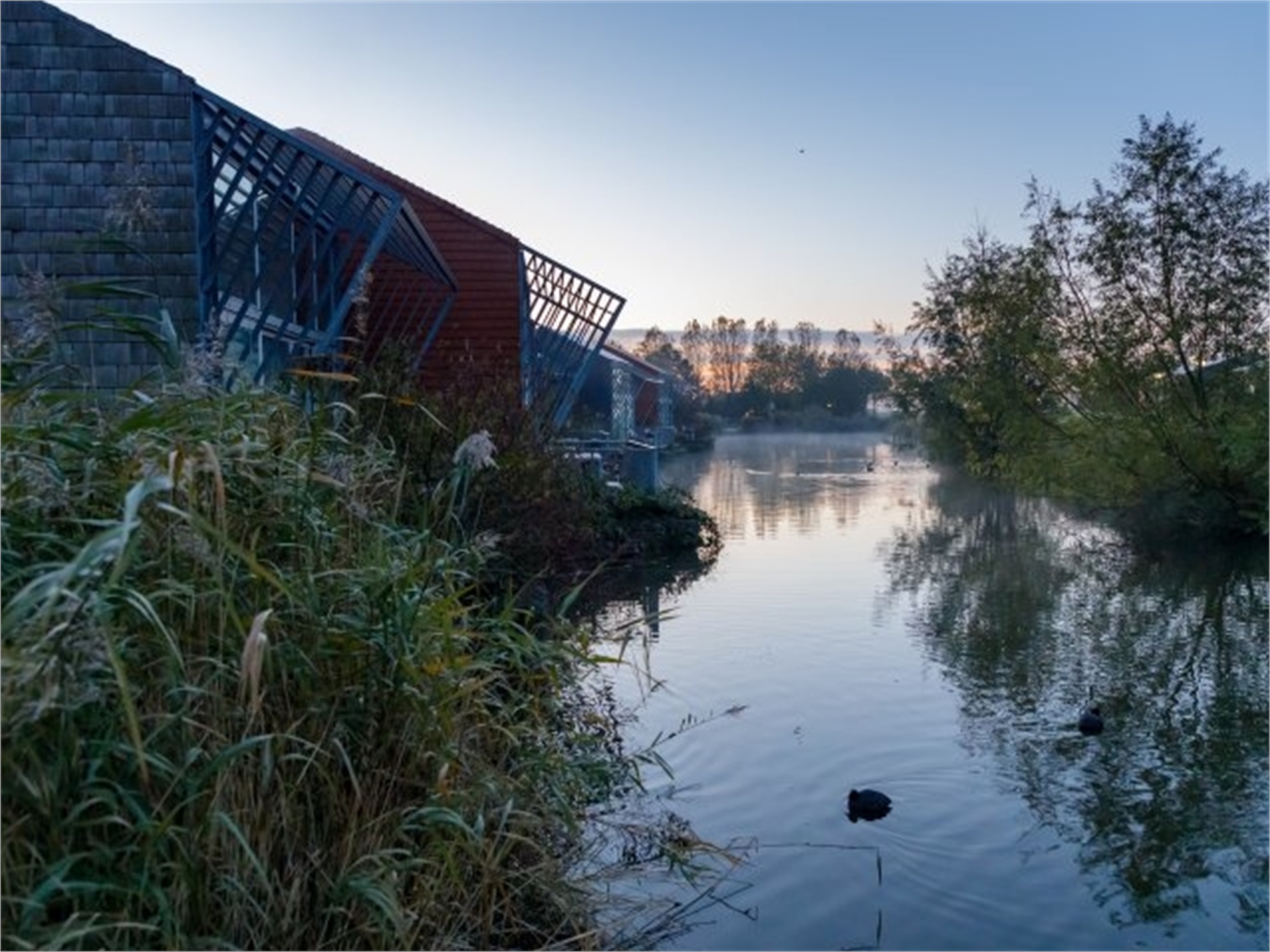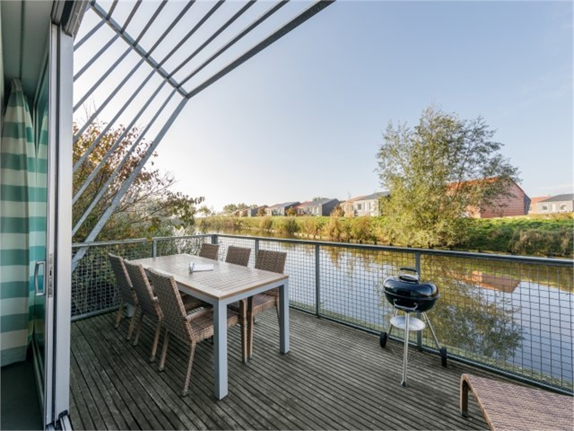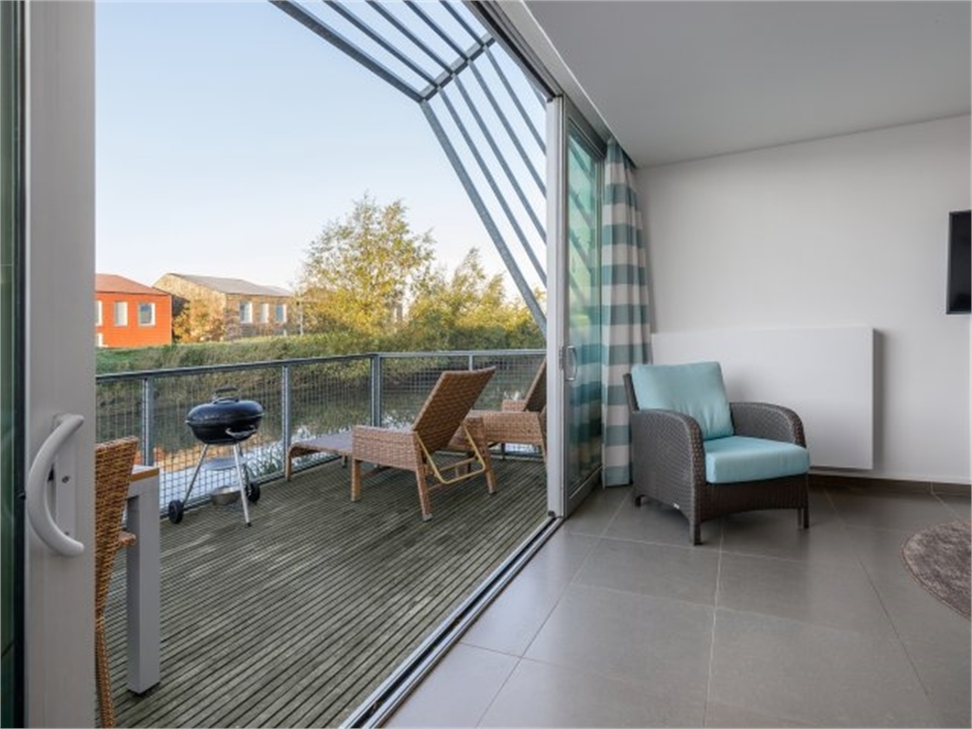 Von Ihrer überdachten Privatterrasse schweift Ihr Blick über den See. Alle Häuser des Typs Ferienhaus am See liegen direkt am Wasser. Das Panorama genießen Sie auch von innen durch die großen Fenster!