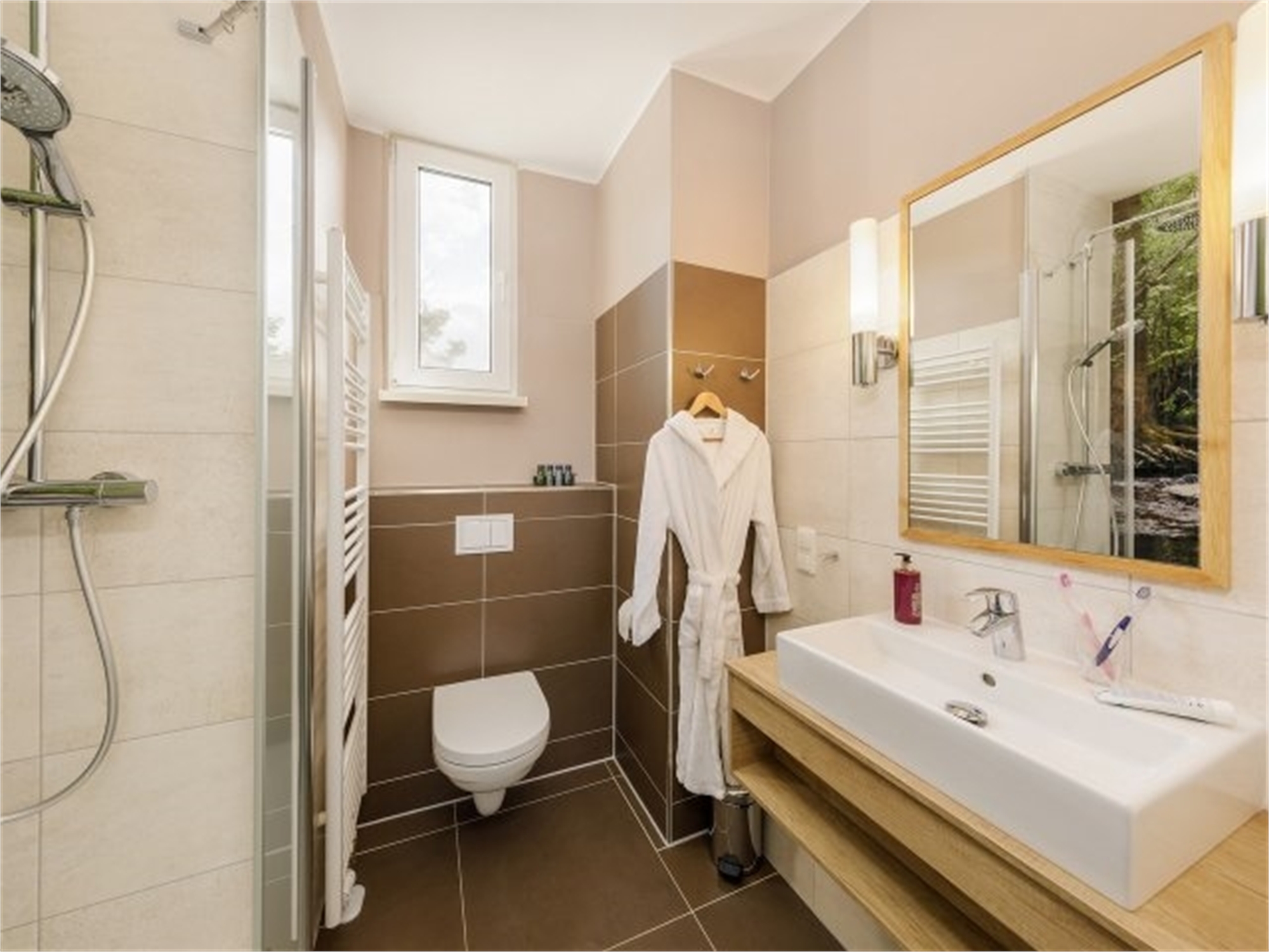 Wenn du dich wirklich verwöhnen möchtest, dann wähle ein VIP-Ferienhaus. Deine Betten sind bei der Ankunft bereits bezogen und Handtücher liegen in deinem Ferienhaus bereit. Genieße das luxuriöse Badezimmer mit Handseife und Duschgel.