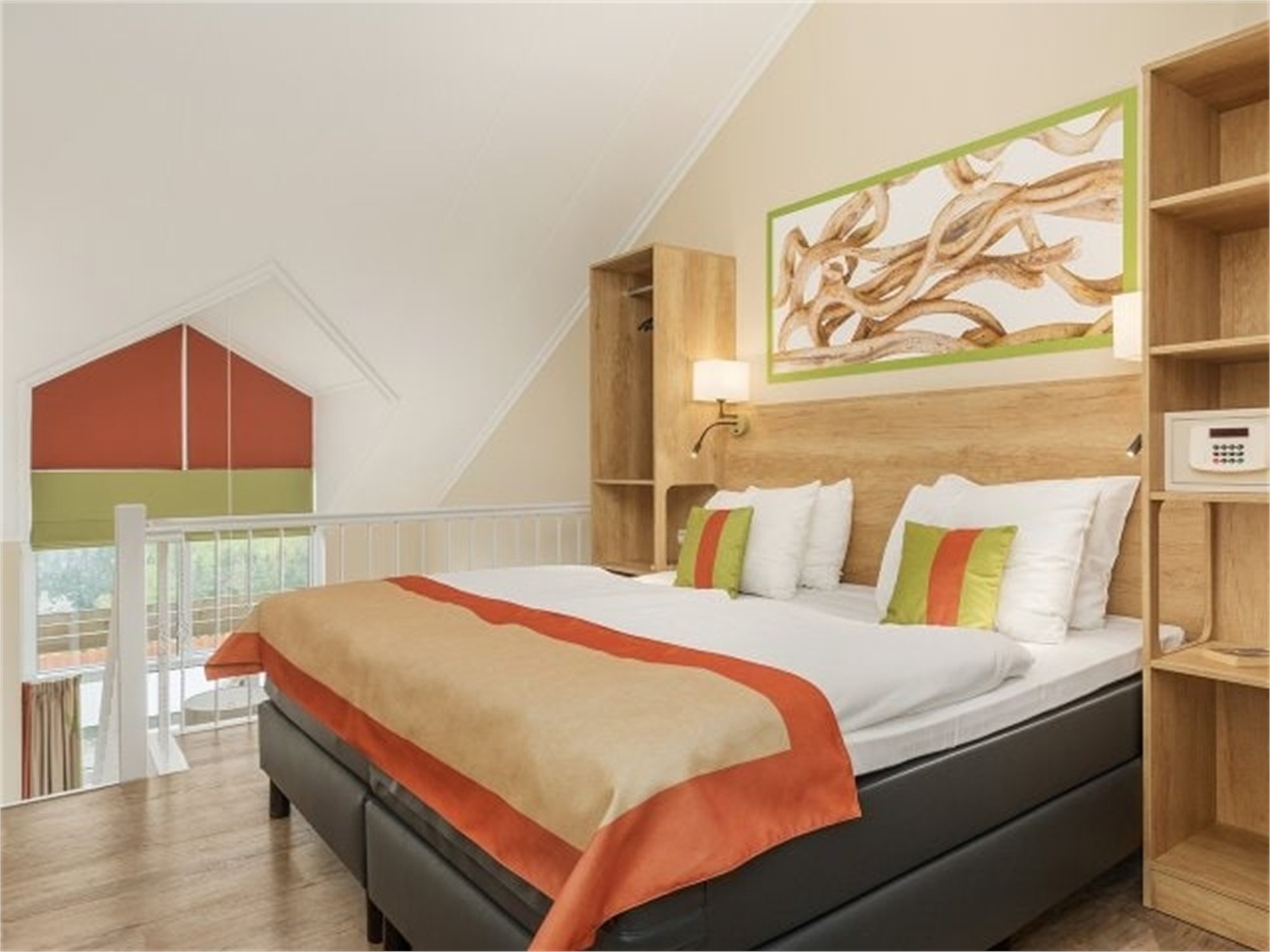 Großzügige Hotelsuite mit komfortablem Wohnbereich und eleganter Einrichtung.