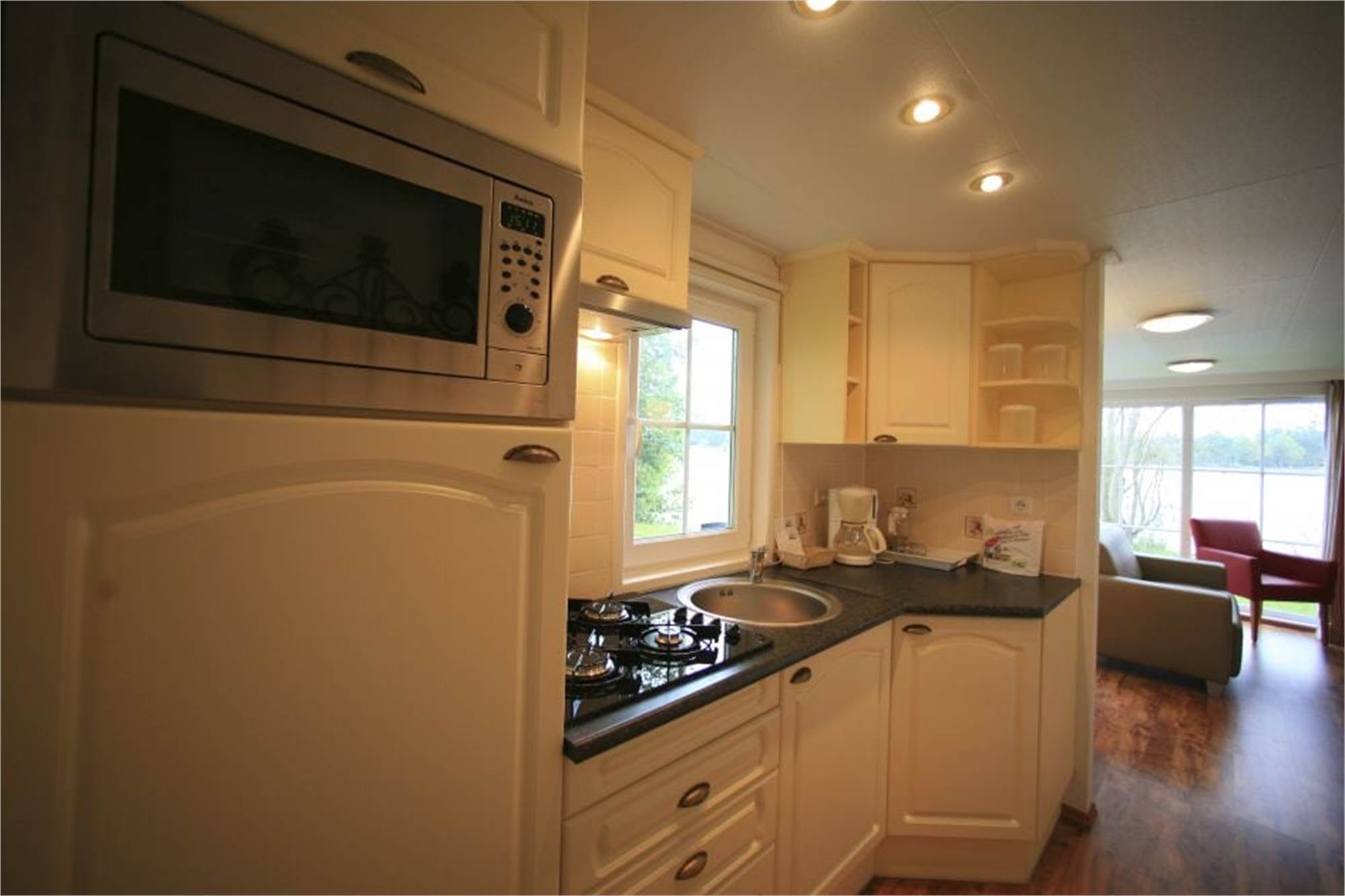 Einteilung: extra großes Wohnzimmer mit Flatscreen-TV, DVD-Playe und WiFi. Luxuriöse offene Küche mit Kombi-Mikrowelle, Kaffeepadsystem und Geschirrspüler. Drei Schlafzimmer, davon zwei mit zwei Einzelbetten und eins mit Etagenbett. Luxuriöses Badezimmer mit Infrarotsauna für eine Person und Dusche/Dampfdusche. Privaten Bootssteg