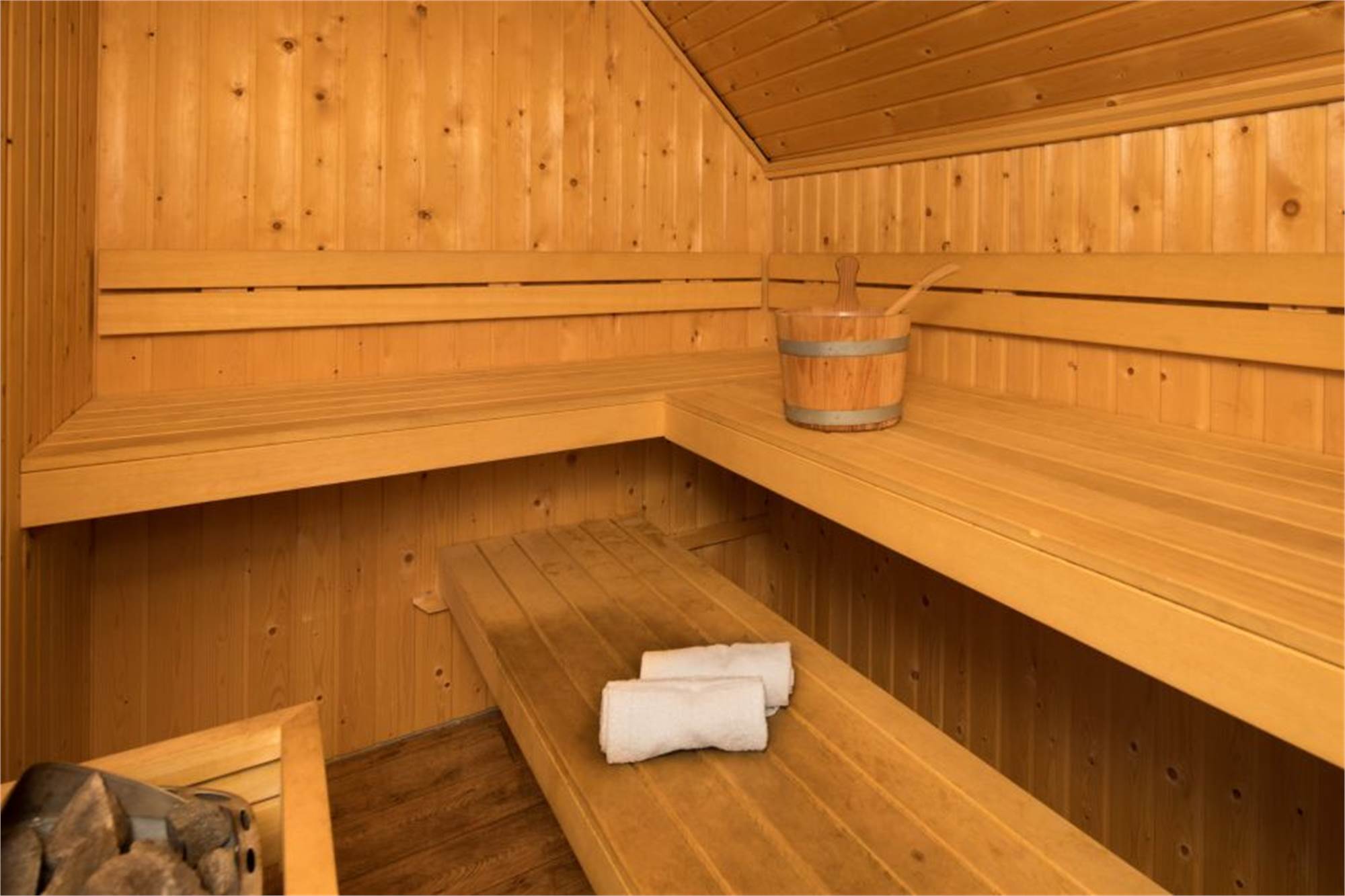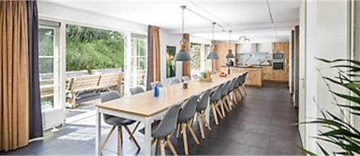 Obergeschoss: sechs Schlafzimmer mit je zwei Einzel-Boxspringbetten. Drei Badezimmer, davon eins mit (Regen)Dusche, Whirlpool und zwei Waschtischen und zwei mit (Regen)Dusche, Toilette und zwei Waschtischen. Separate Toilette. Traditionelle Sauna für sechs Personen.