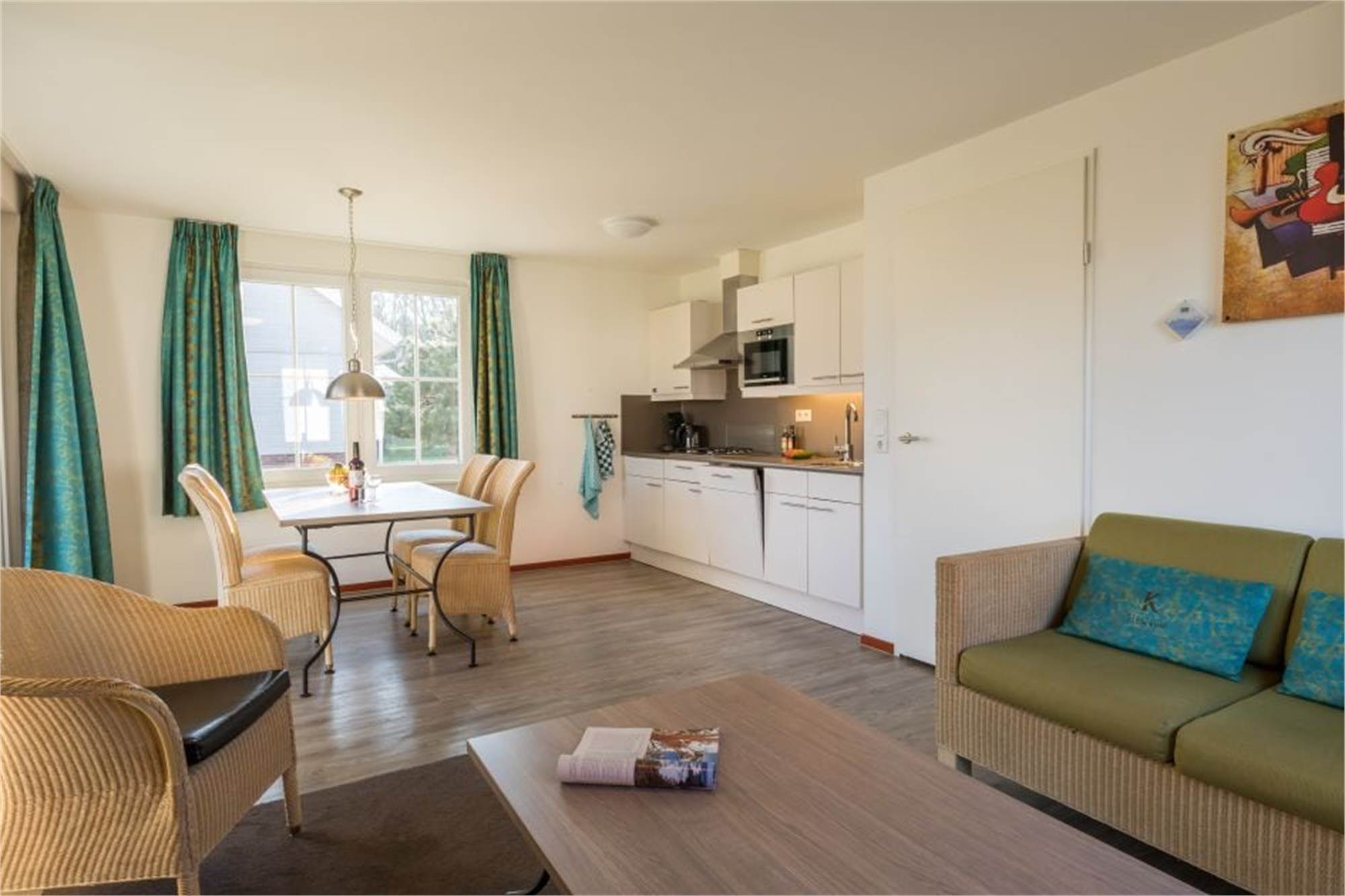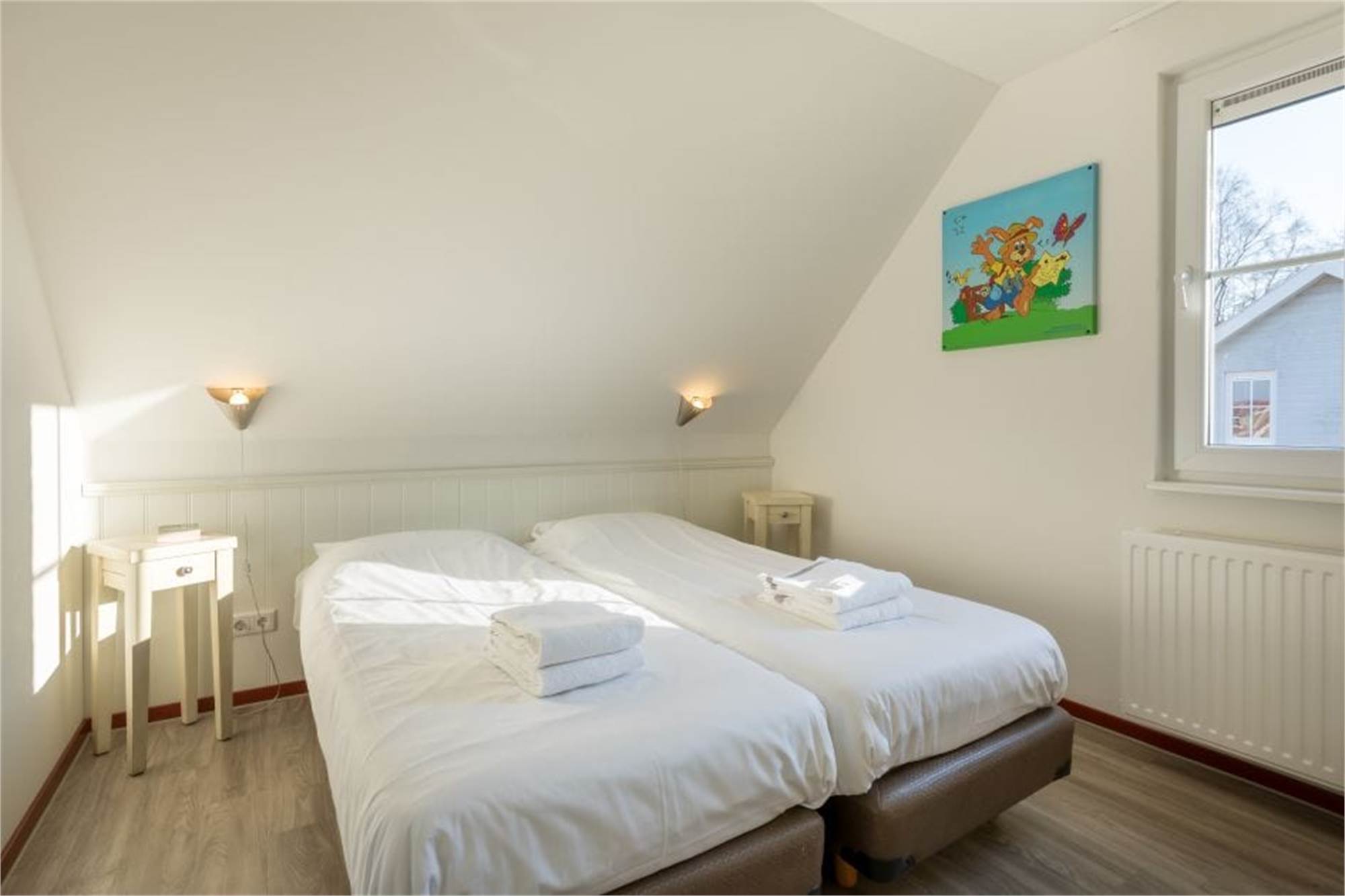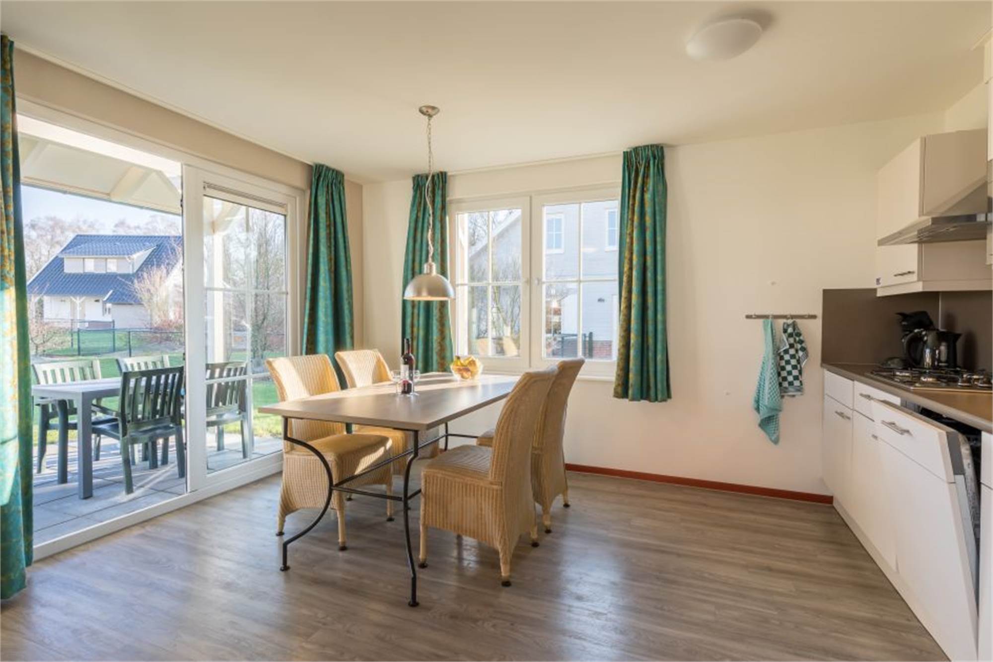 Diese freistehende luxuriöse Villa im Ferienpark Résidence Klein Vink eignet sich für 4 Personen. Durch den Flur gelangen Sie in das helle Wohnzimmer mit Flügeltüren zur Terrasse. Die Küche ist mit hochwertigen Einbaugeräten, einschließlich Geschirrspüler, ausgestattet. Im Obergeschoss finden Sie zwei gemütliche Schlafzimmer mit jeweils zwei Einzelbetten. Diese Villa verfügt über zwei Badezimmer, von denen ein Badezimmer mit Badewanne ausgestattet ist. Sowohl im Erdgeschoss als auch im Obergeschoss gibt es eine separate Toilette. Im Abstellraum befindet sich eine Waschmaschine. Sie haben die Möglichkeit WiFi gratis zu nutzen.