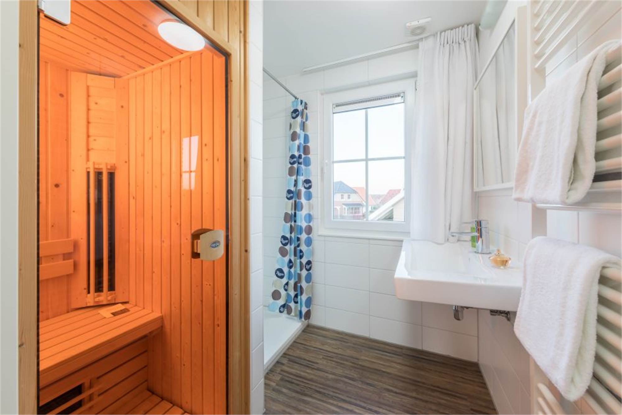 Diese freistehende luxuriöse Villa im Ferienpark Résidence Klein Vink eignet sich für 8 Personen. Durch den Flur gelangen Sie in das helle Wohnzimmer mit Flügeltüren zur Terrasse. Die Küche ist mit hochwertigen Einbaugeräten, einschließlich Geschirrspüler, ausgestattet. Im Erdgeschoss gibt es ein Schlafzimmer mit zwei Einzelbetten und einem Ensuite Badezimmer. Im Obergeschoss finden Sie drei gemütliche Schlafzimmer mit jeweils zwei Einzelbetten sowie zwei Badezimmer, eins mit Dusche und Badewanne und eins mitD Dusche.. Sowohl im Erdgeschoss als auch im Obergeschoss gibt es eine separate Toilette. Im Abstellraum befindet sich eine Waschmaschine. Sie haben die Möglichkeit WiFi gratis zu nutzen.