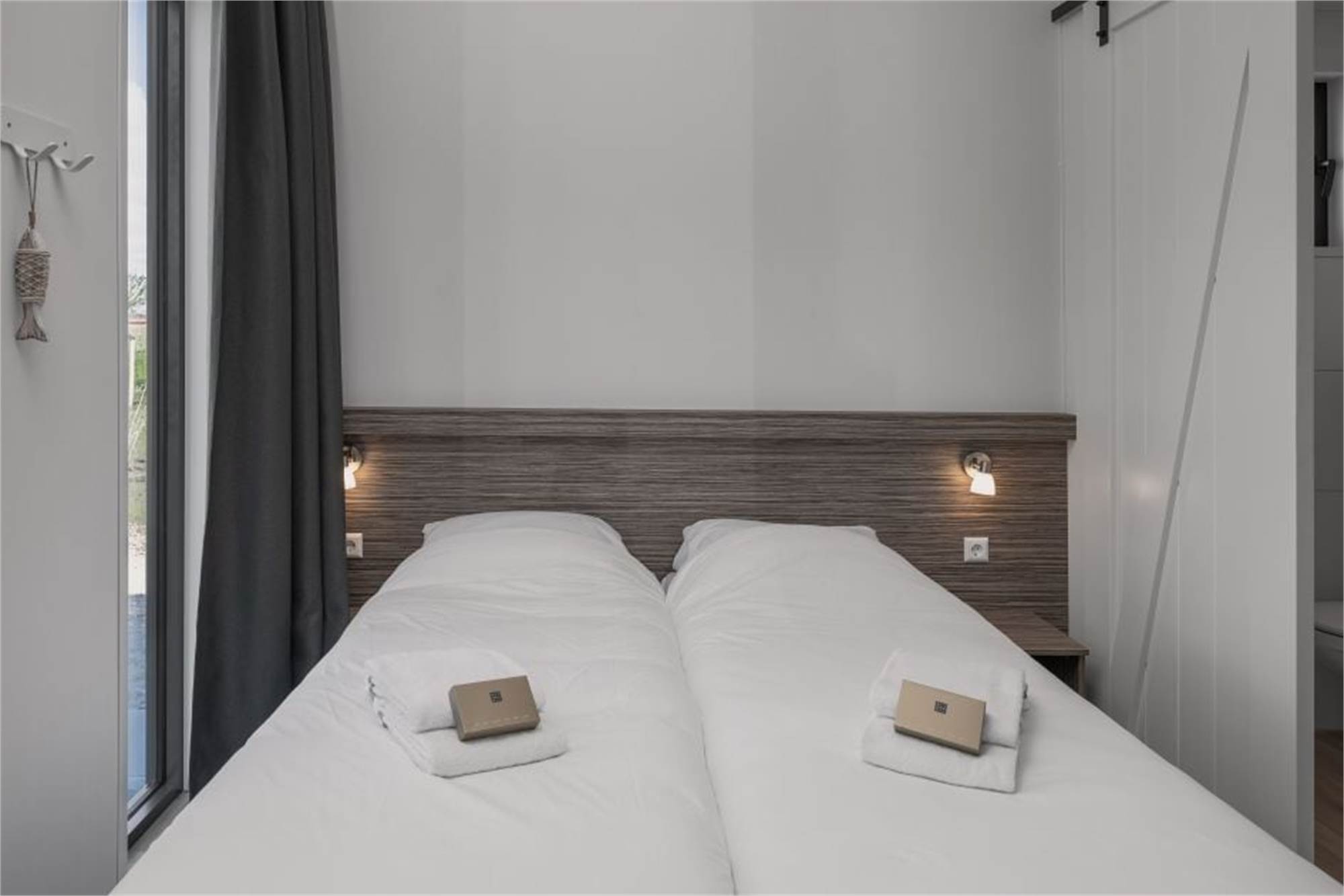 Diese freistehende, ebenerdige Lodge ist für 4 Personen geeignet und ist mit einem geräumigen Wohnzimmer, Sitzecke, Smart-TV und einer Essecke ausgestattet. Die offene Küche ist vollständig eingerichtet, darunter eine Kaffeemaschine und ein Wasserkocher. Es gibt zwei Schlafzimmer 1 Badezimmer en Suite und Dusche. In beiden Schlafzimmern befinden sich je 2 Einzelbetten und jedes Schlafzimmer hat einen Fernseher. Die Badezimmer verfügen über eine Dusche und eine Toilette. Die Lodge hat außerdem eine überdachte Terrasse, die über die Flügeltüren zum Garten erreicht wird. Dort stehen komfortable Gartenmöbel zur Verfügung. Parken ist auf dem zentralen Parkplatz möglich.