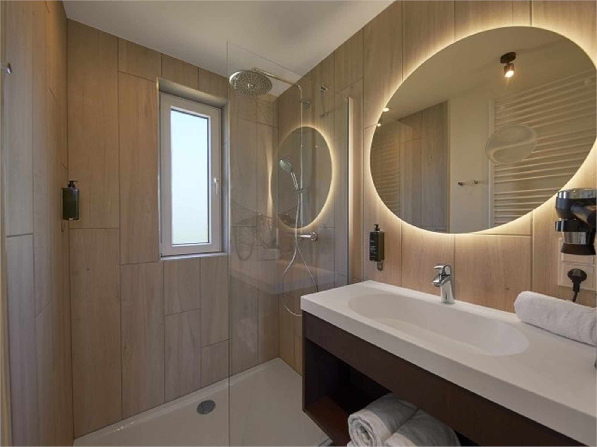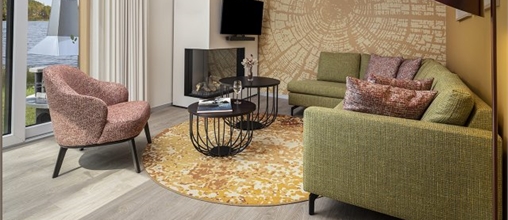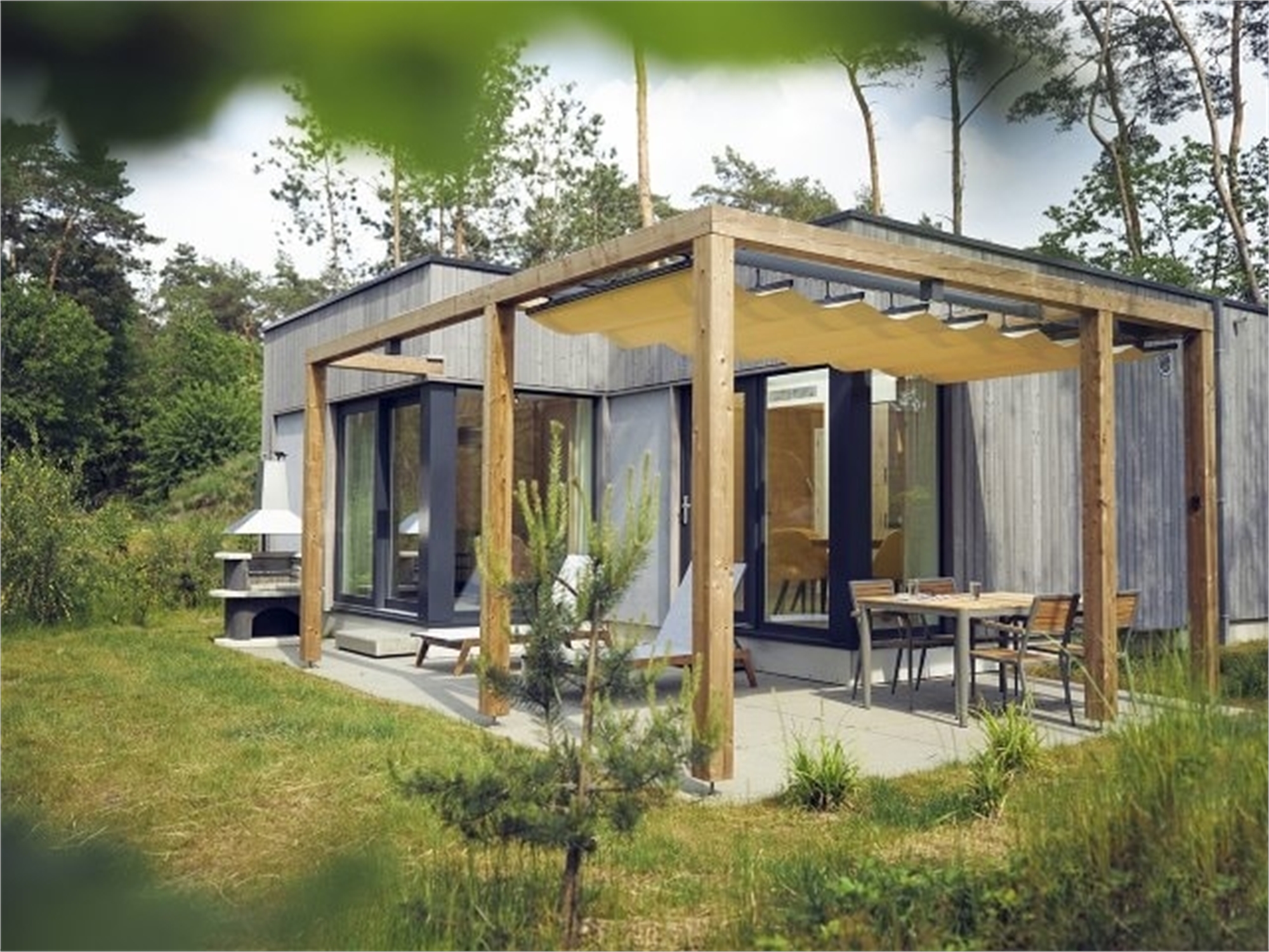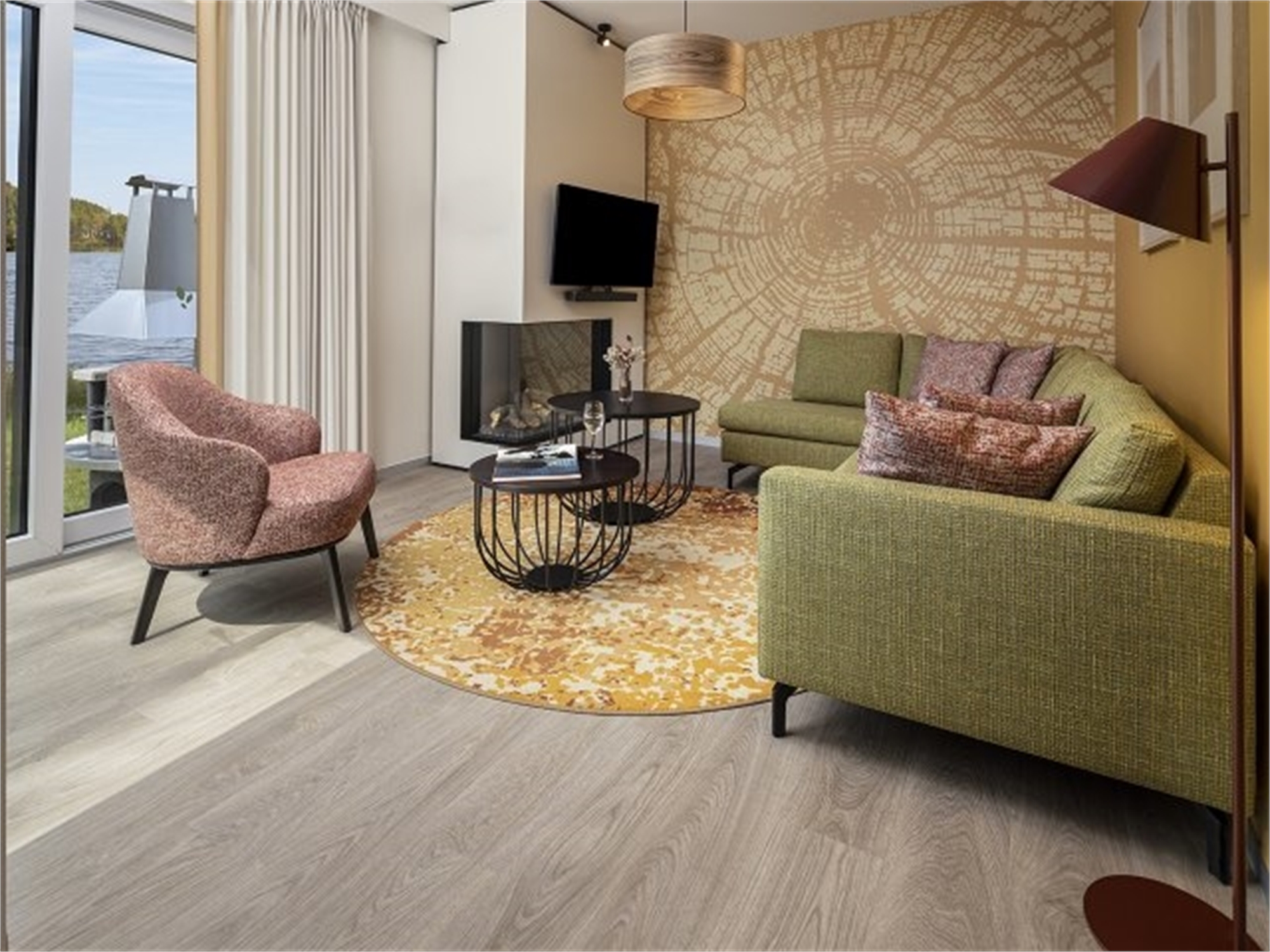 Von Ihrer überdachten Privatterrasse schweift Ihr Blick über den See. Alle Häuser des Typs Ferienhaus am See liegen direkt am Wasser. Das Panorama genießen Sie auch von innen durch die großen Fenster!