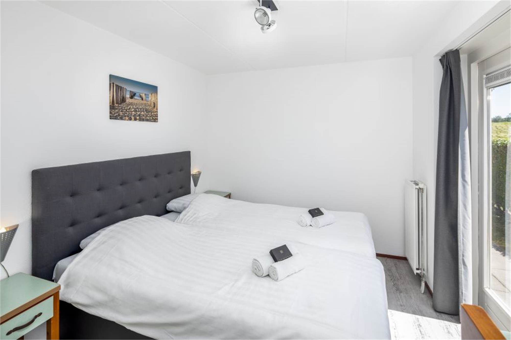 Diese freistehende Villa eignet sich für 8 Personen. Das stilvolle Wohnzimmer ist mit Smart-TV und Flügeltüren ausgestattet. Die angrenzende Küche verfügt u. a. über Kaffeemaschine, Geschirrspüler, (Kombi) Mikrowelle und Kühlschrank mit Gefrierfach. Im Erdgeschoss finden Sie außerdem ein Schlafzimmer, ein Badezimmer mit Dusche und eine separate Toilette. Im Obergeschoss befinden sich die übrigen drei Schlafzimmer mit je zwei Einzel-Boxspringbetten sowie ein Badezimmer mit Badewanne. Die Villa ist kinderfreundlich eingerichtet und bietet Treppengitter oben, einen Laufstall, ein Kinderbett und einen Kinderstuhl. Im Außenbereich finden Sie eine möblierte Veranda sowie eine Parkmöglichkeit für 2 Autos. Die Nutzung von WiFi ist gratis.